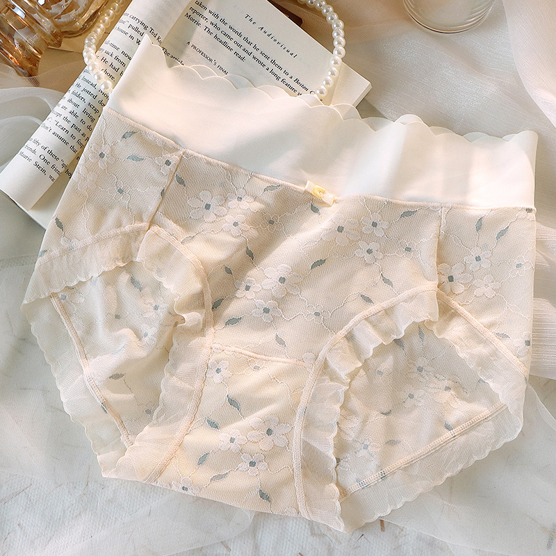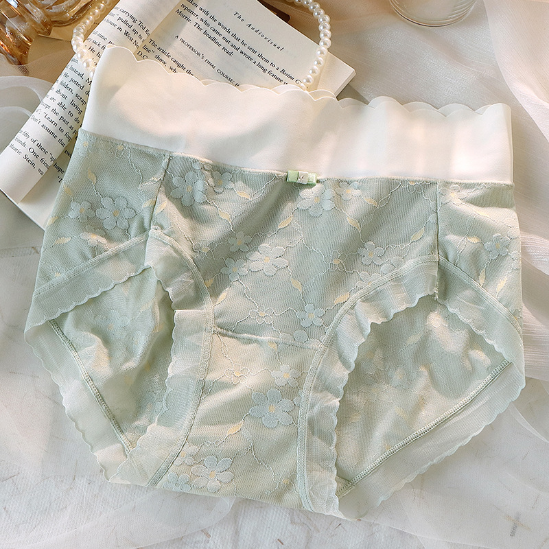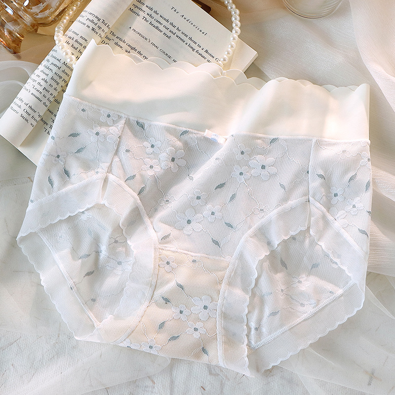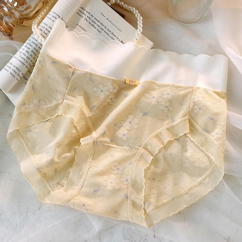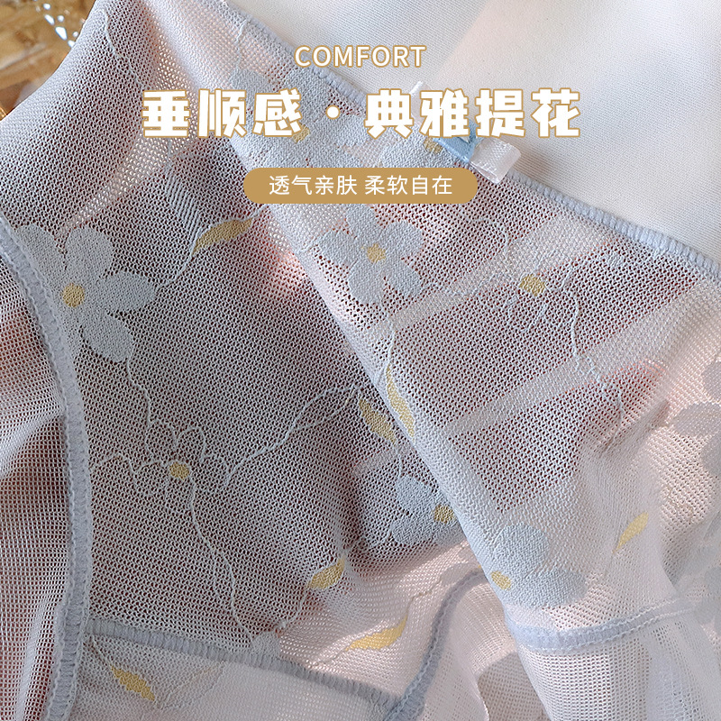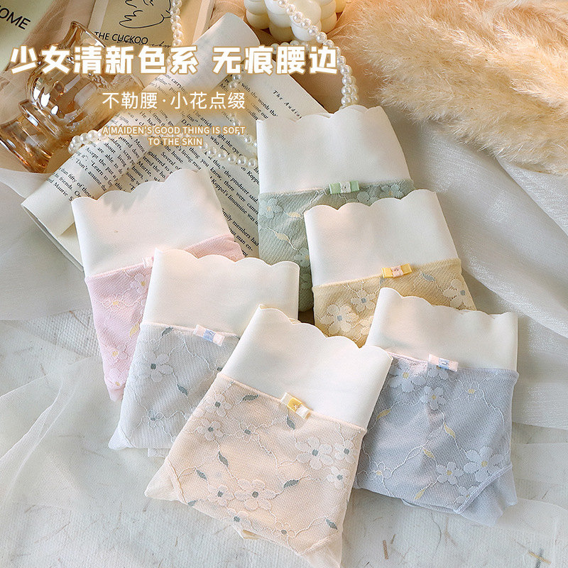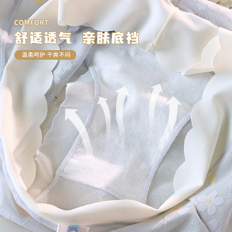 冰丝无痕内裤女中腰网纱提花少女国风蝴蝶结纯棉抗菌裆女士三角裤