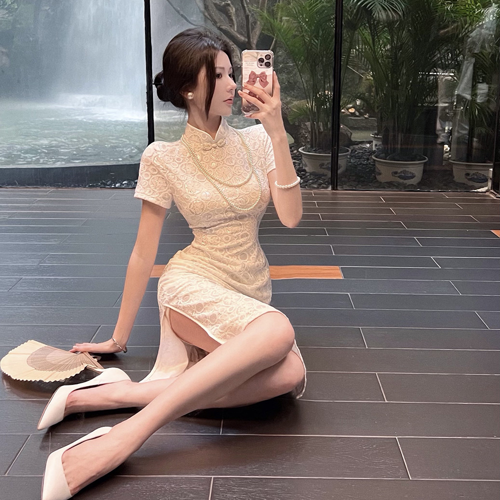 夏季新款女装复古国风蕾丝显瘦修身包臀改良款少女旗袍连衣裙