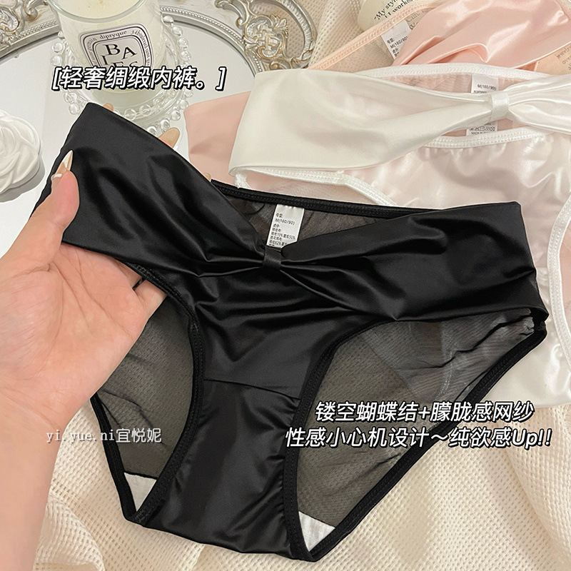 法式缎面纯欲风~性感法式镂空内裤女生裆舒适纯棉裆女士三角内裤