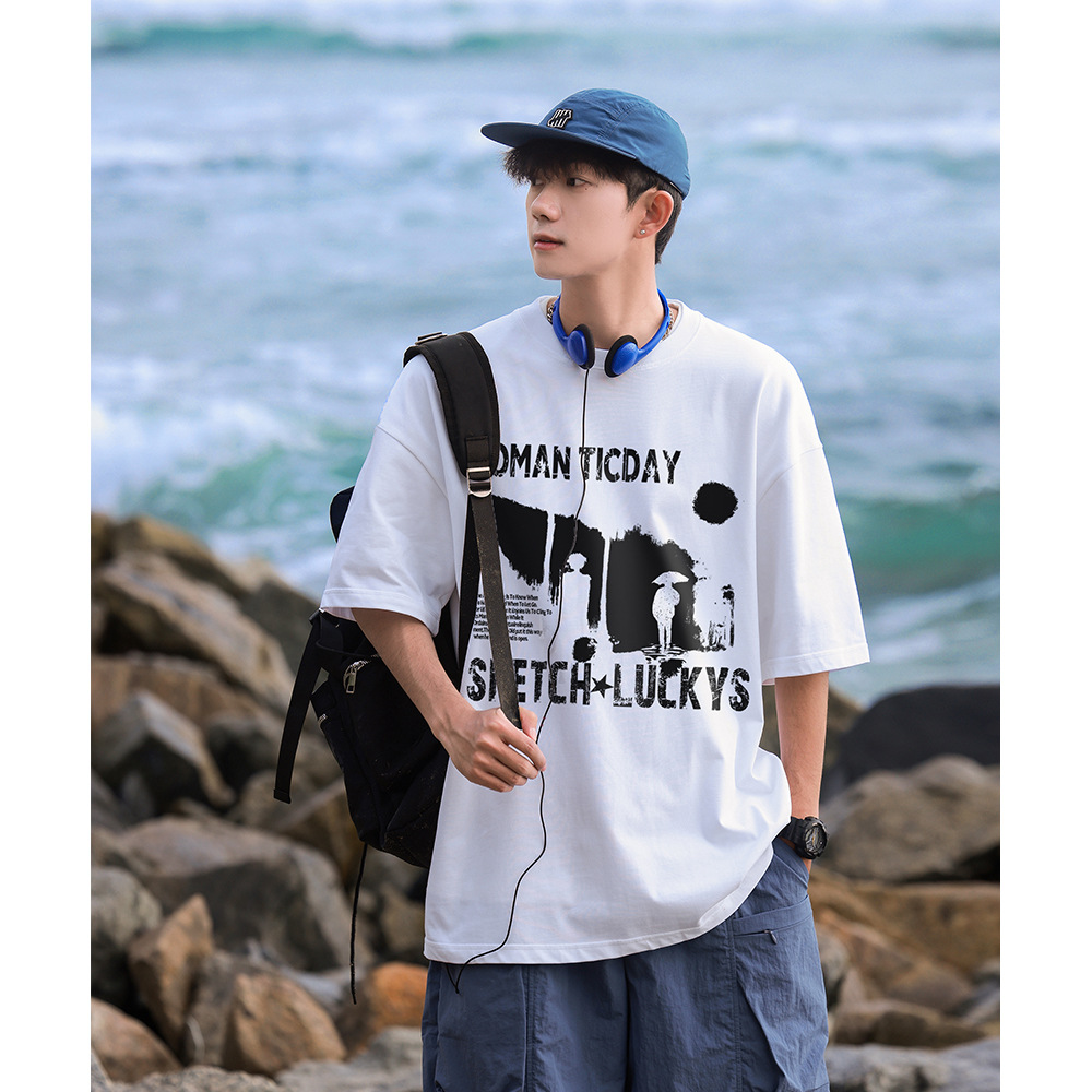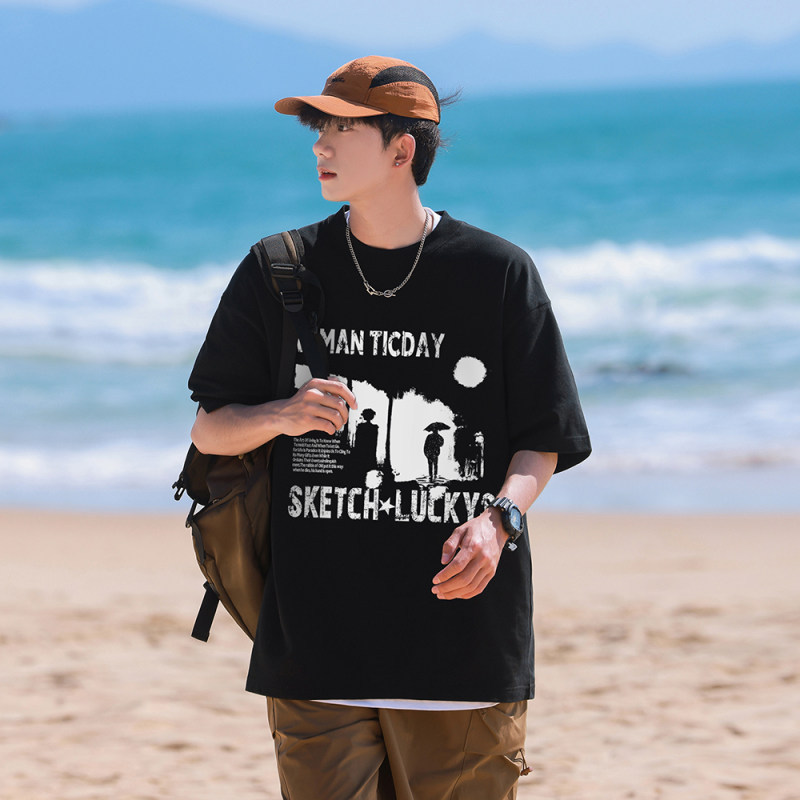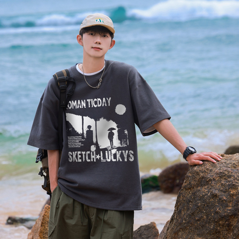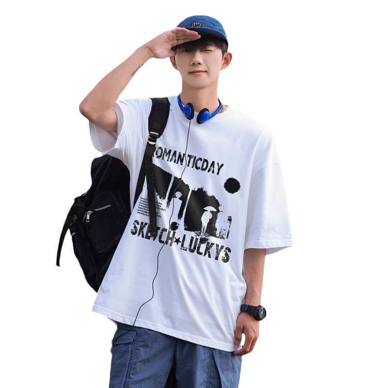 夏季新款青少年学生宽松圆领短袖印花t恤男初中生高中生半袖上衣