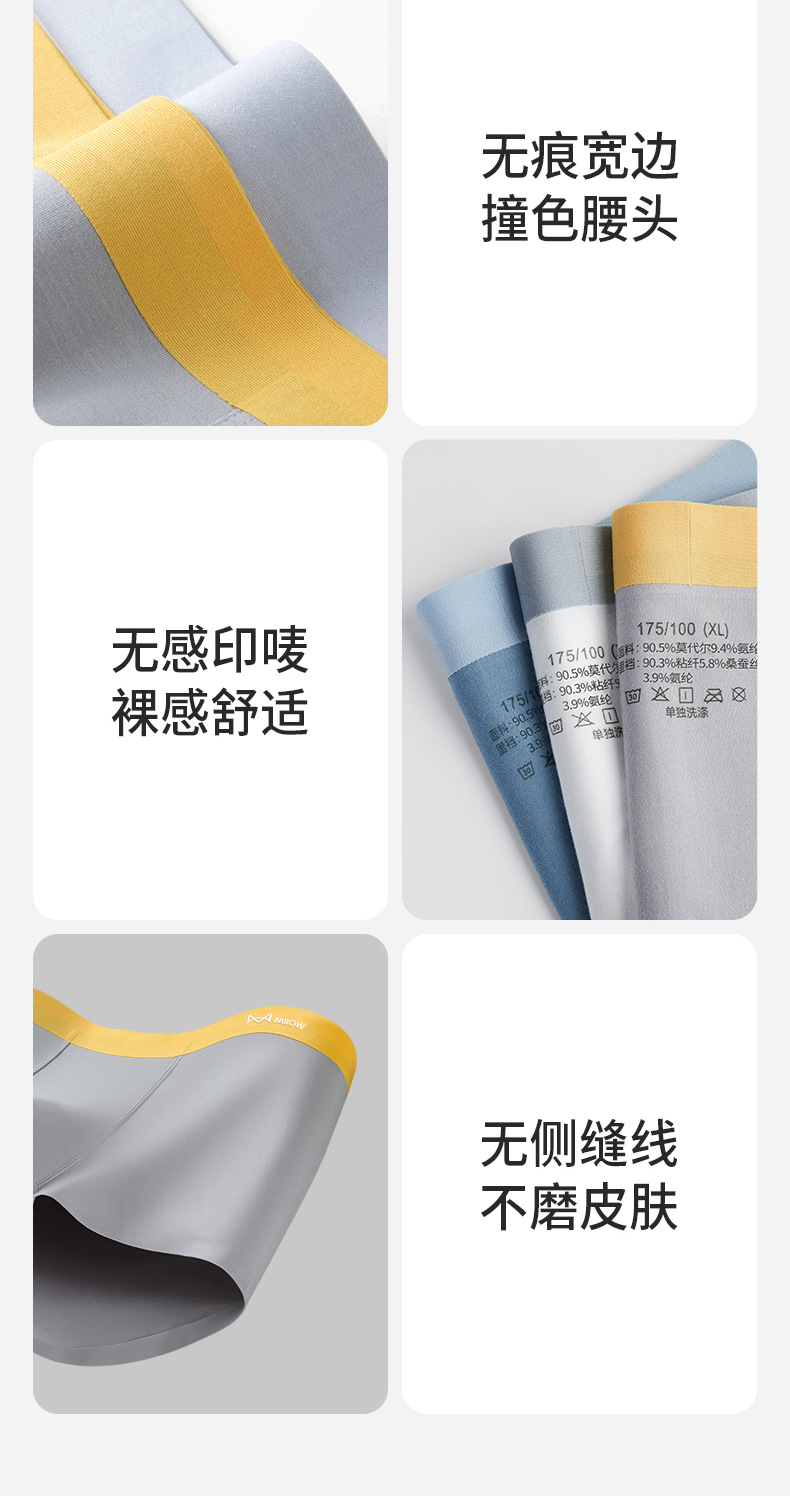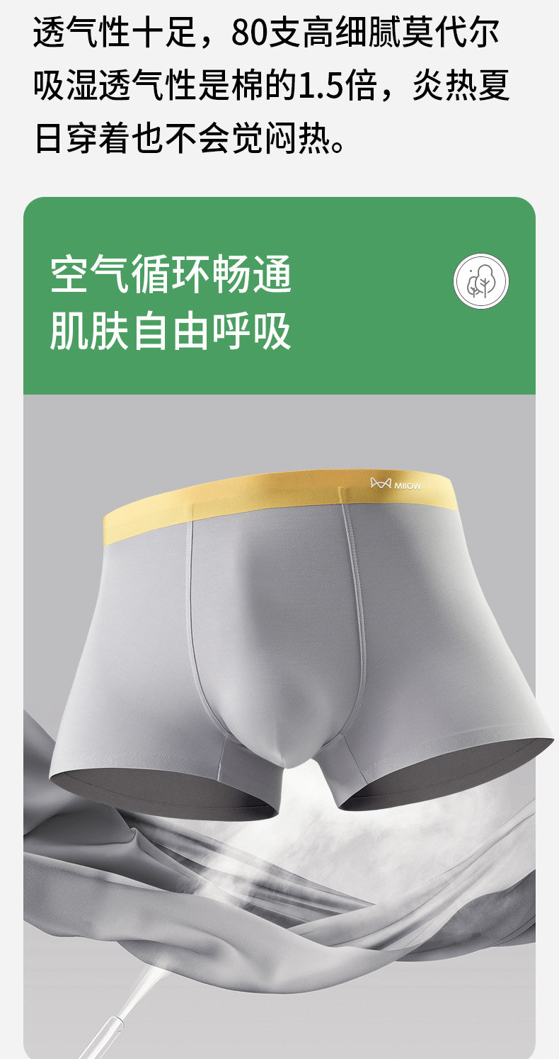 80支莫代尔男士内裤大码高端潮牌无痕男生平角裤夏季抑菌男四角裤