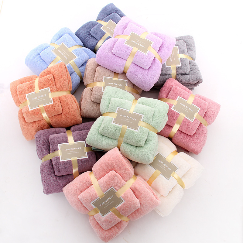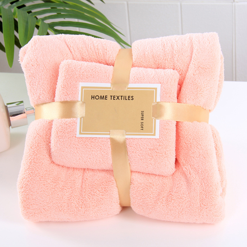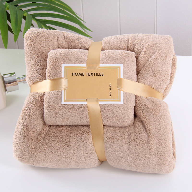 毛巾浴巾套装珊瑚绒沙滩巾加厚柔软礼品巾吸水子母套巾
