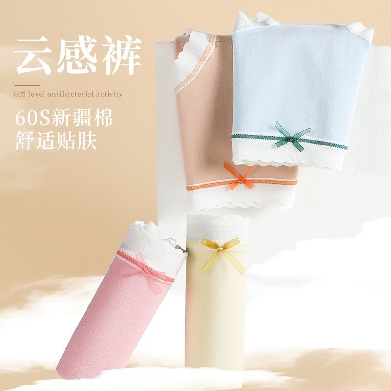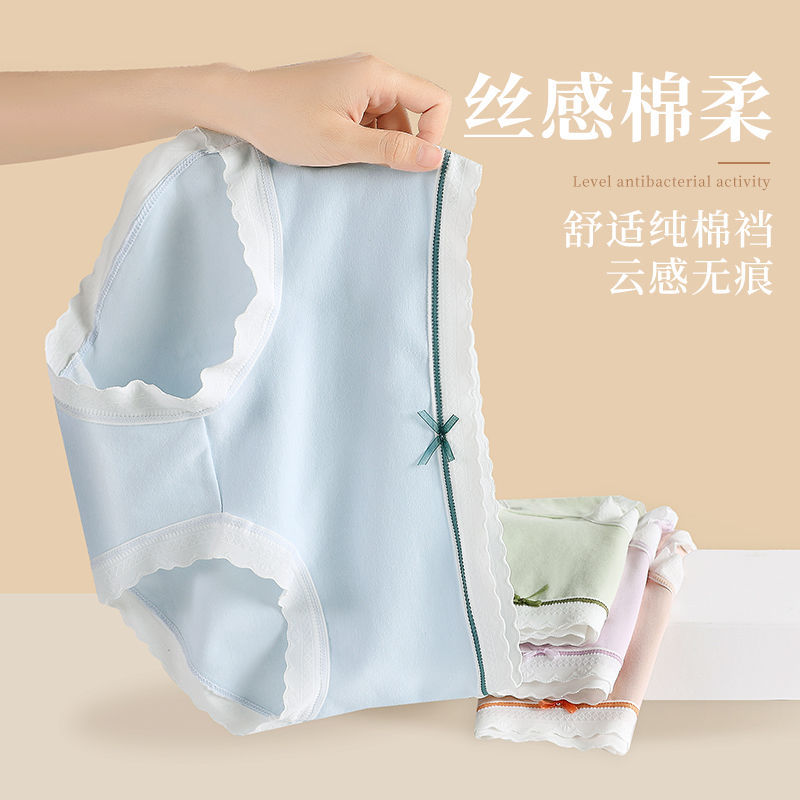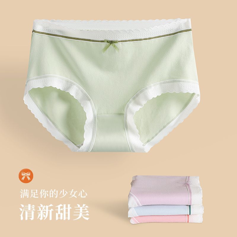 纯棉内裤女士全棉抗菌裆学生日系大码胖mm甜美无痕蕾丝新款三角裤
