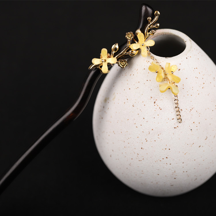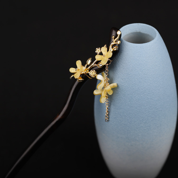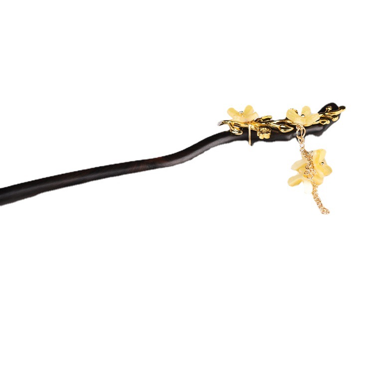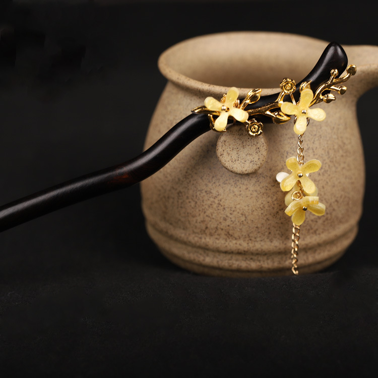 桂花簪子盘发丸子头头饰木簪黑檀木流苏发饰仙气旗袍超仙