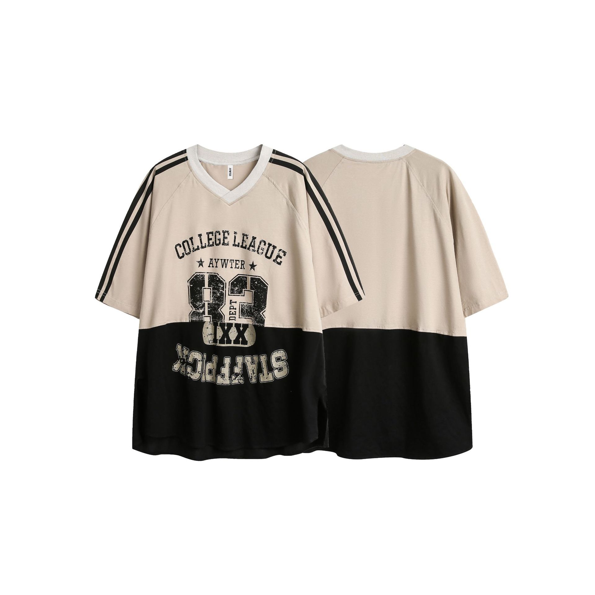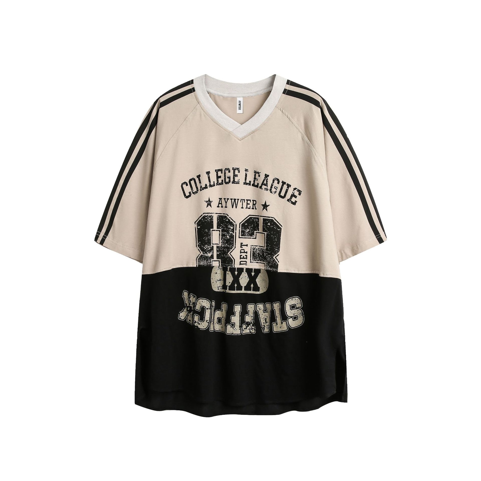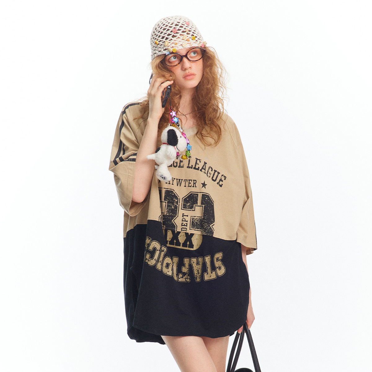 长款拼接宽松上衣夏季T恤美式休闲潮流街头风女士短袖