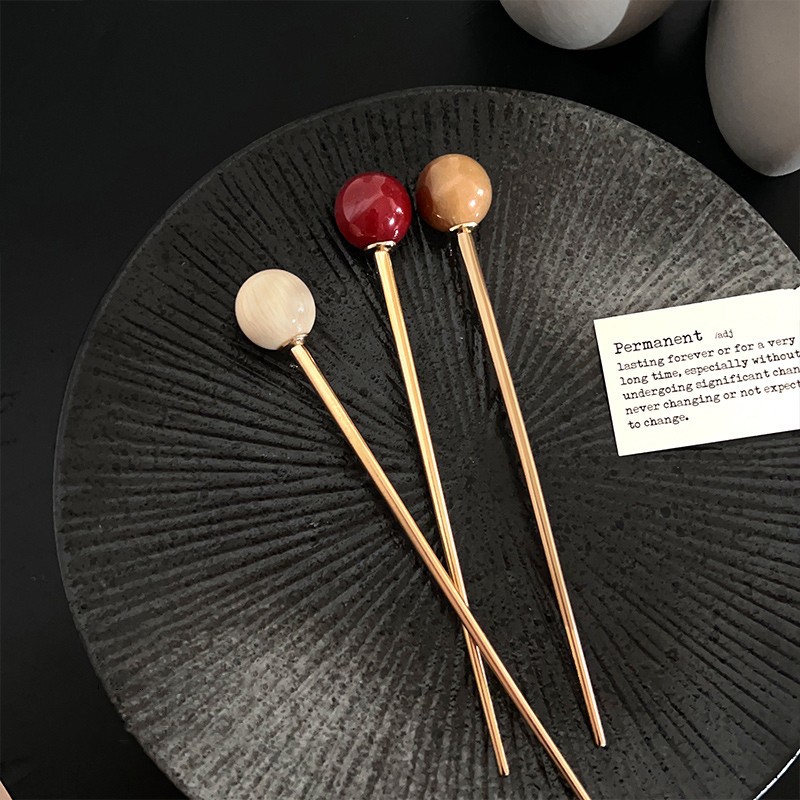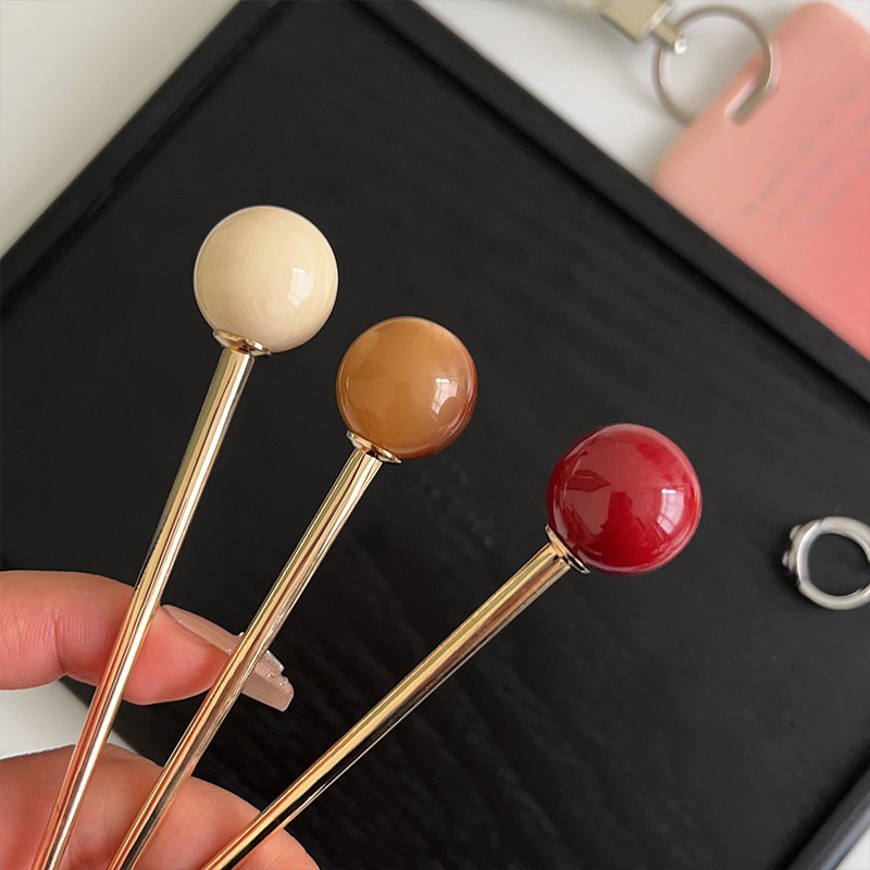 圆球金属发簪女丸子头懒人盘发神器简约现代发钗日常佩戴百搭簪子