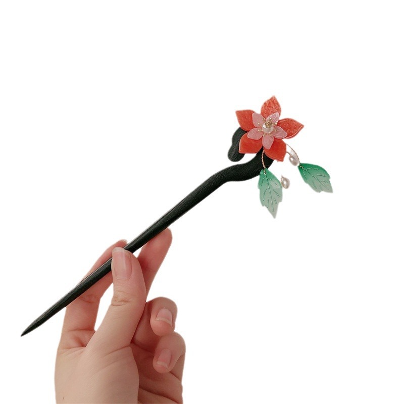古风发簪流苏步摇木簪子橘黄花朵仿黑木头饰盘发汉服配饰古装发钗