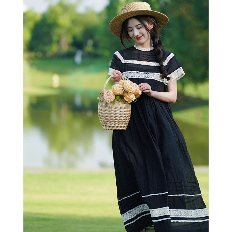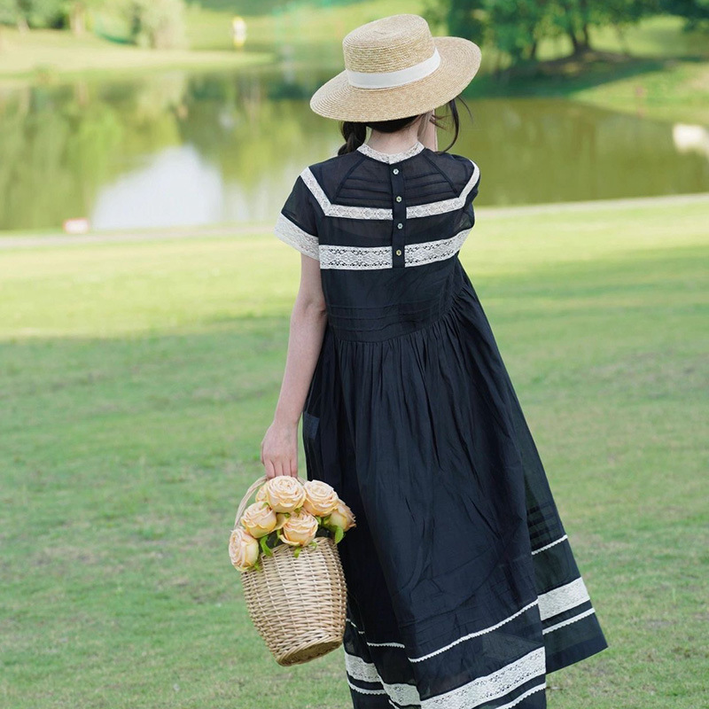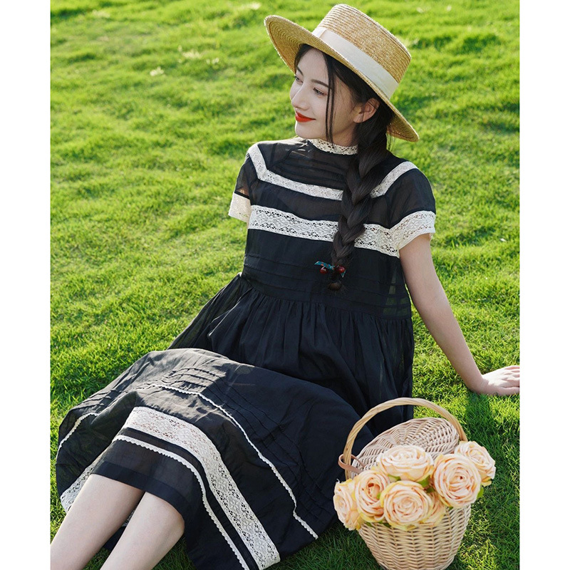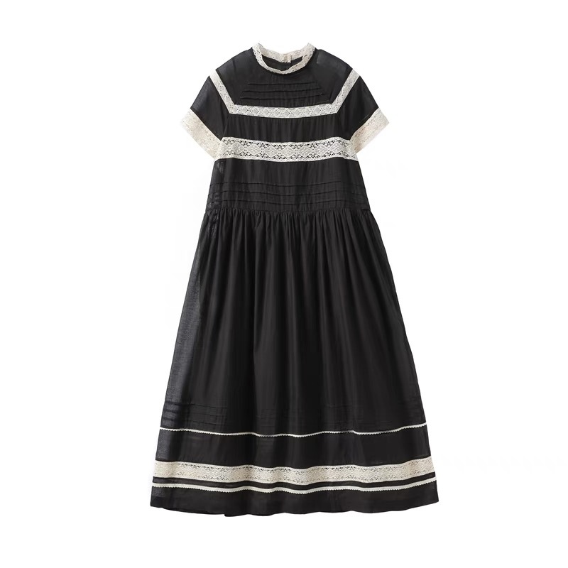 高端别致漂亮独特气质名媛高级感重工蕾丝黑色连衣裙子女夏季