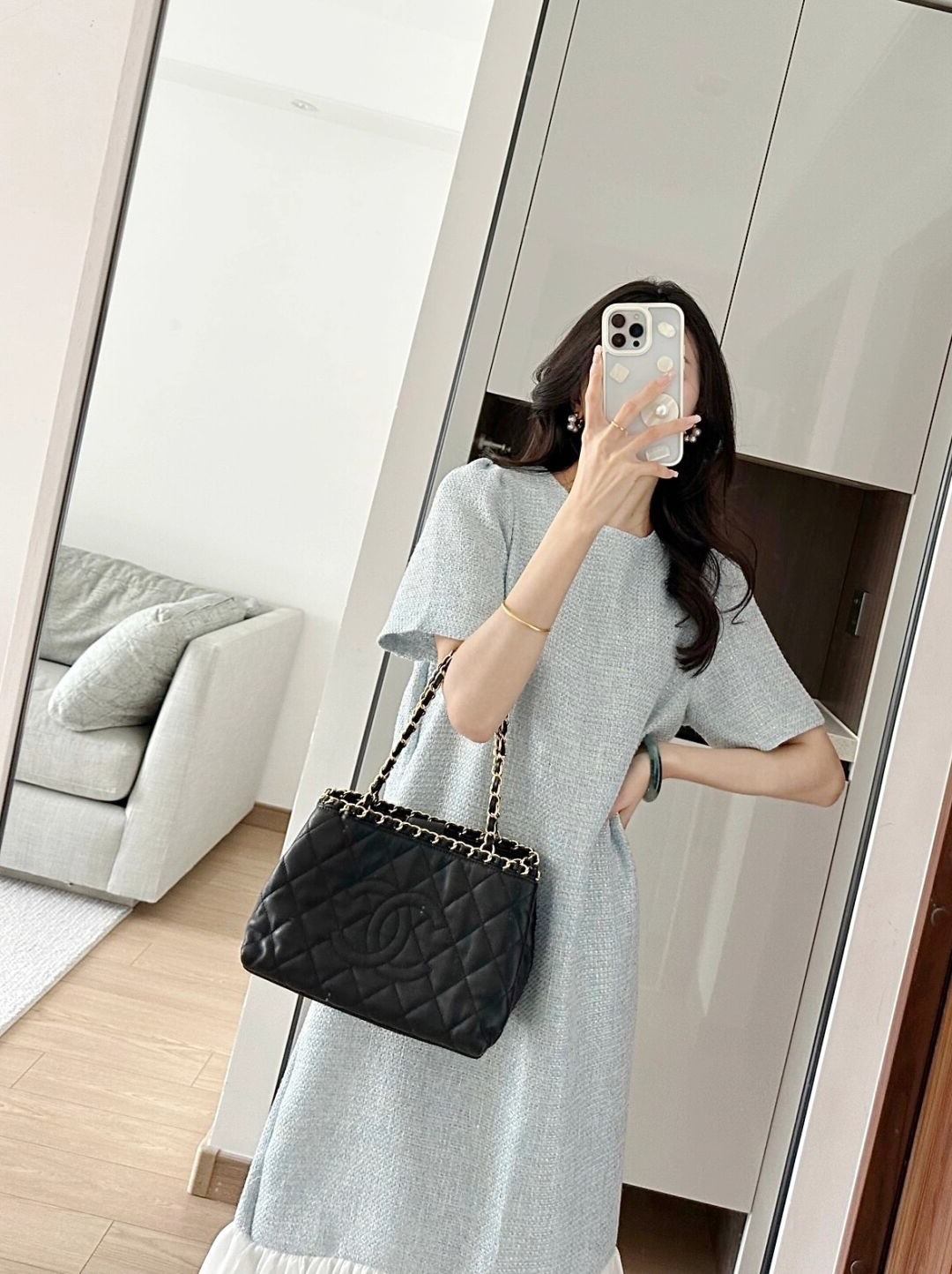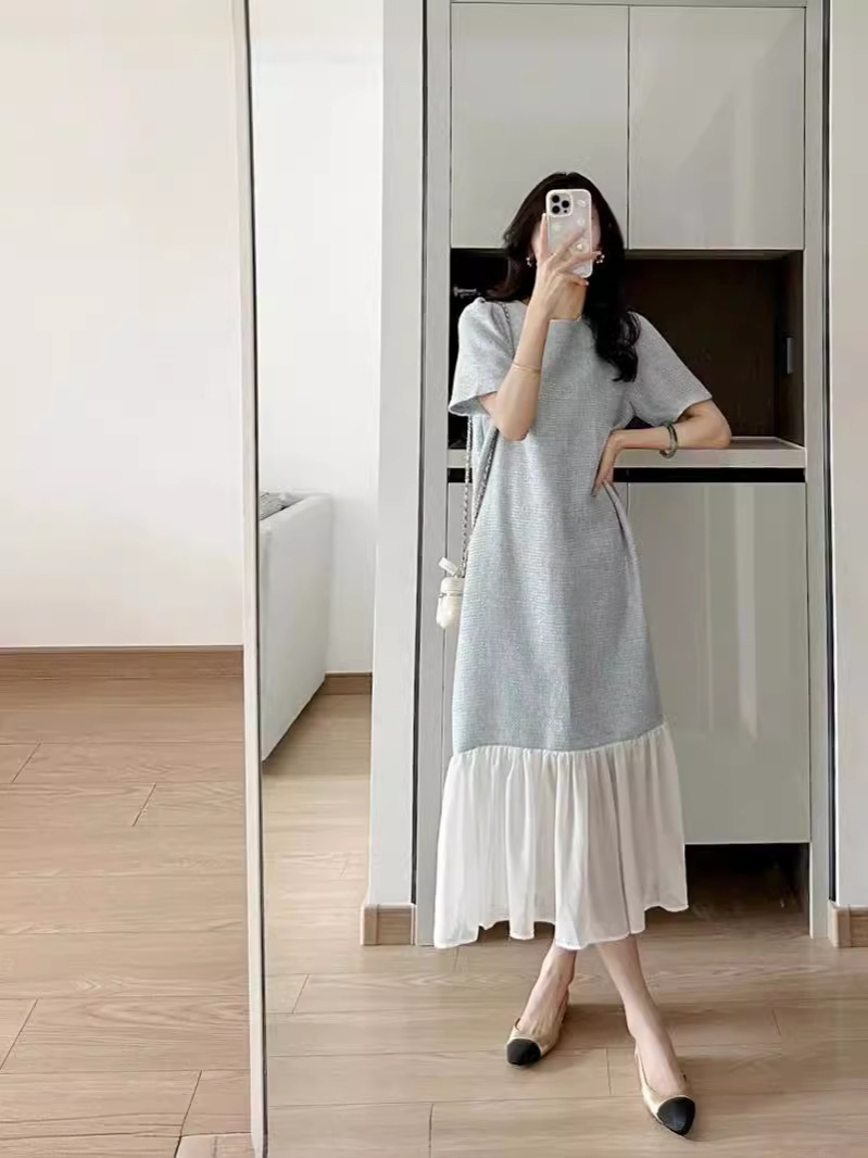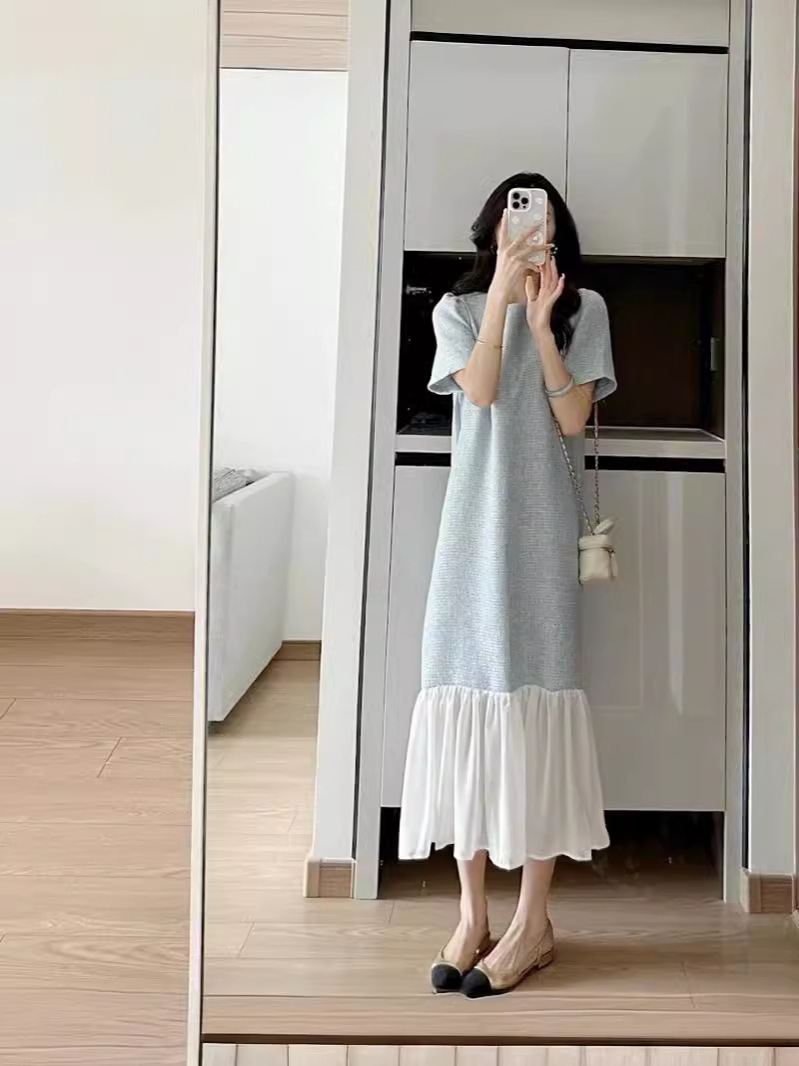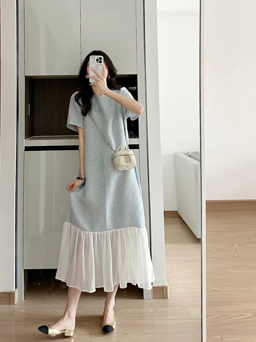 茶歇法式连衣裙女夏新款小香风蓝色度假风气质高端精致鱼尾裙长裙