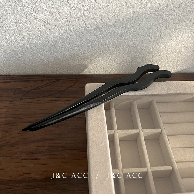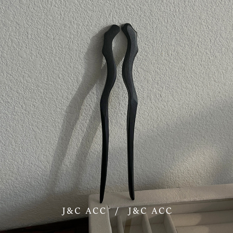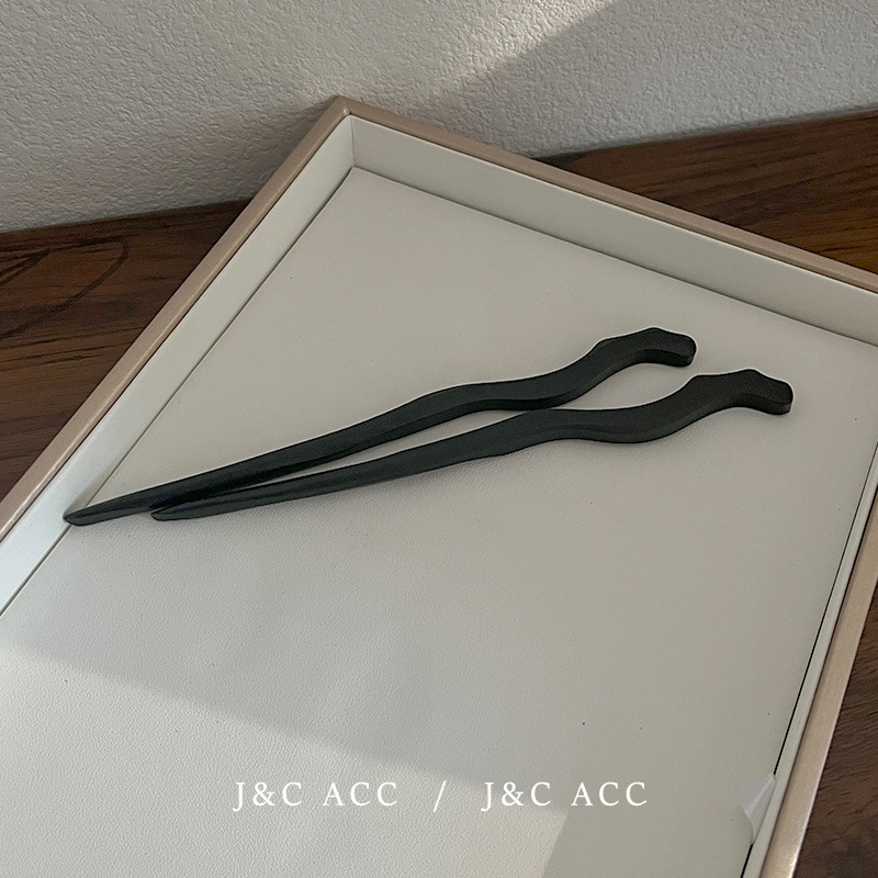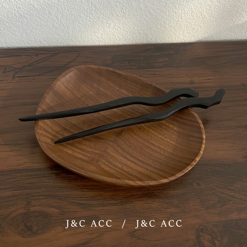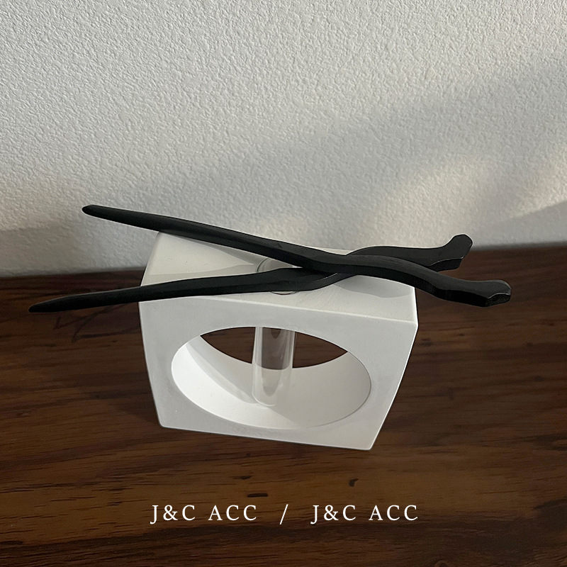 新中式黑檀木简约发簪古风后脑勺盘丸子头发钗现代木质簪子头饰