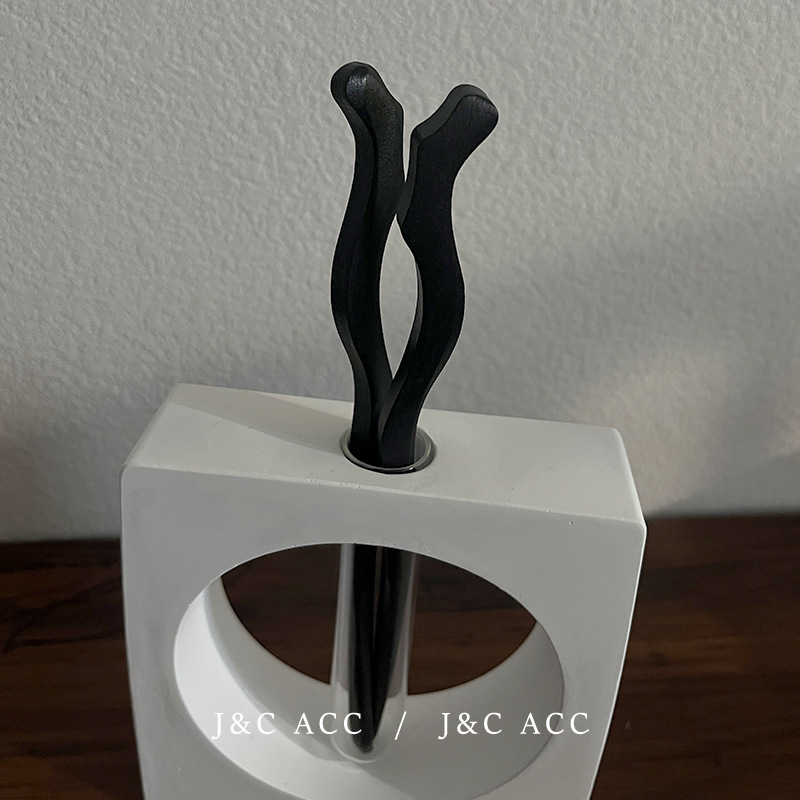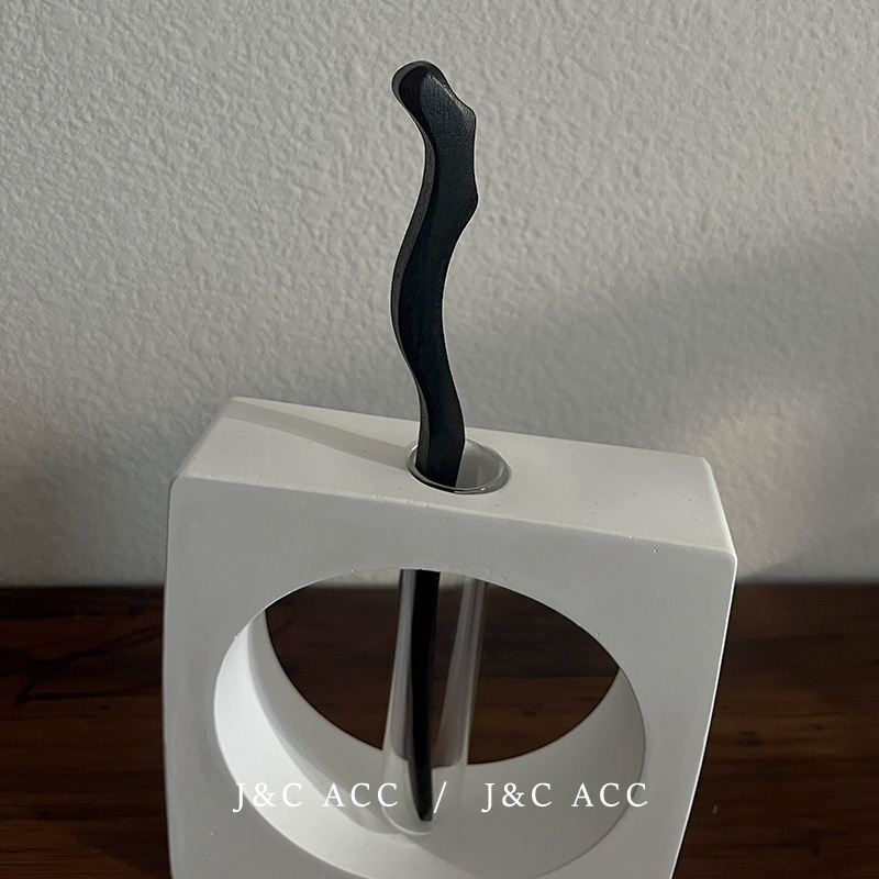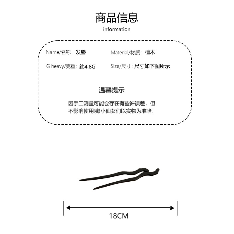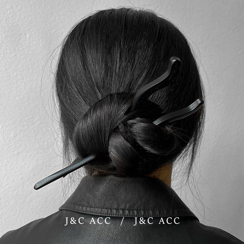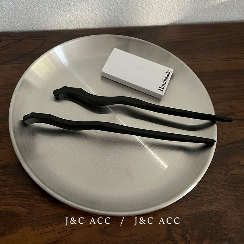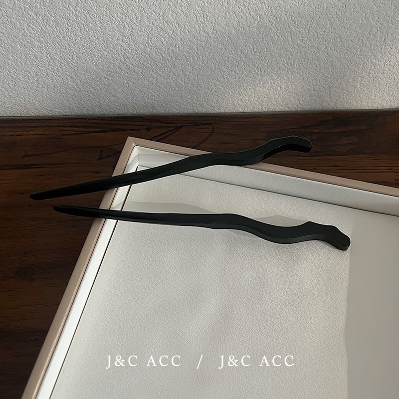 新中式黑檀木简约发簪古风后脑勺盘丸子头发钗现代木质簪子头饰