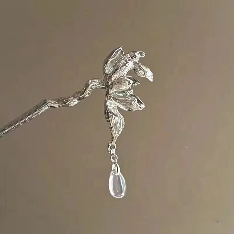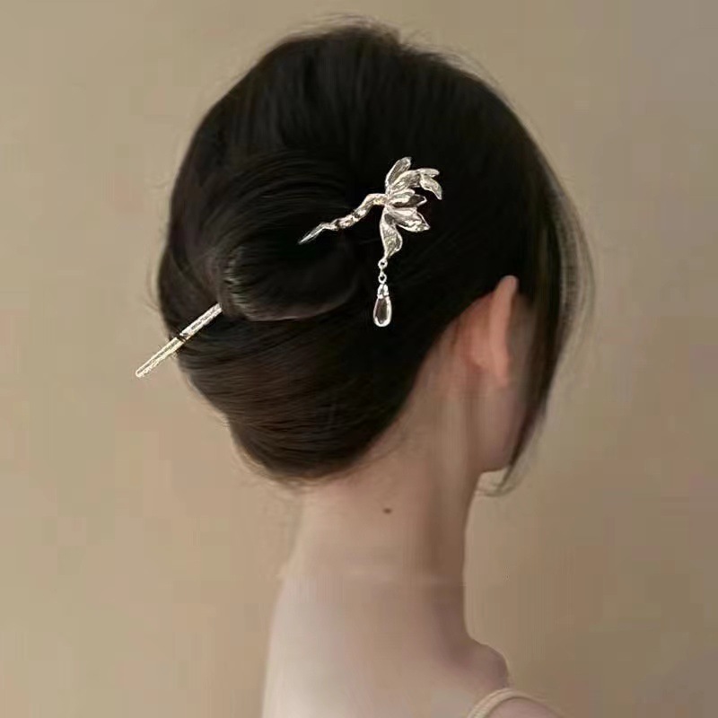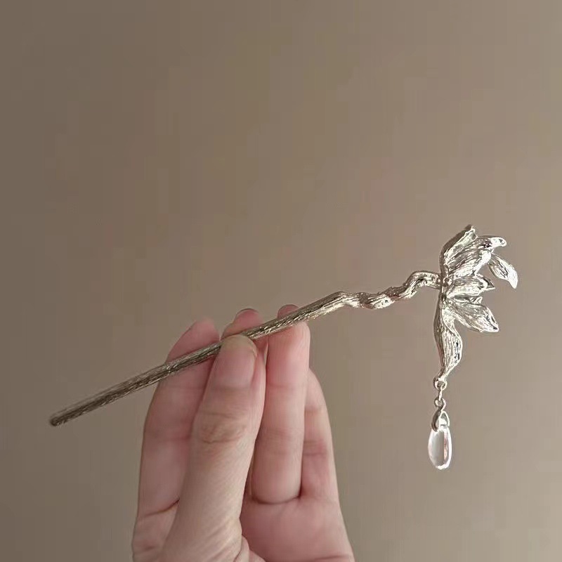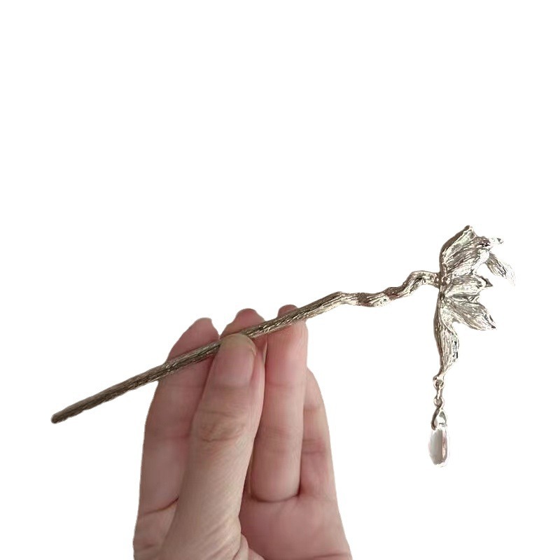 新中式莲花水滴发簪女禅意风清冷簪子 高级感小众气质中国风
