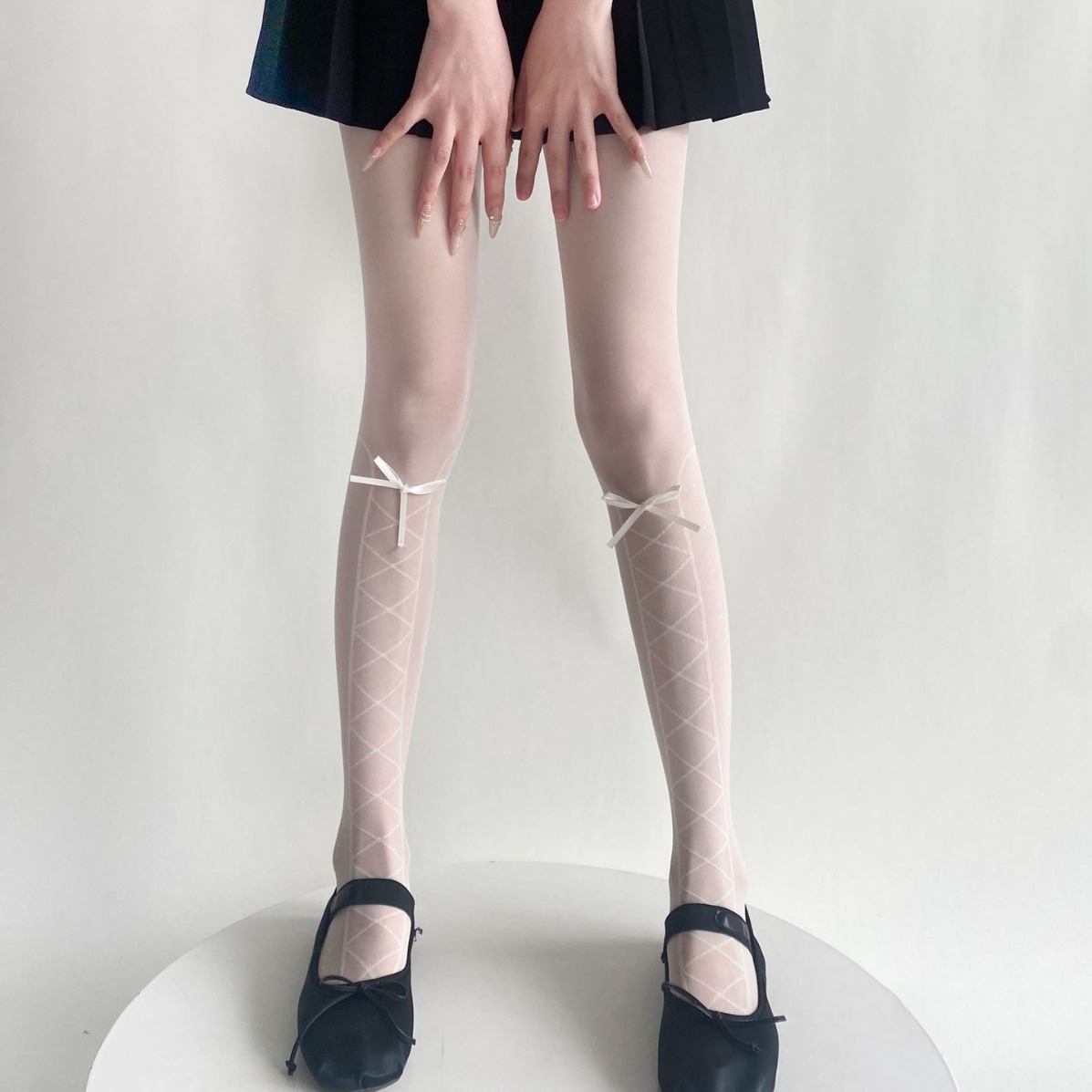 春夏超薄款白色lolita丝袜蝴蝶结波点假绑带黑丝芭蕾风连裤袜女夏