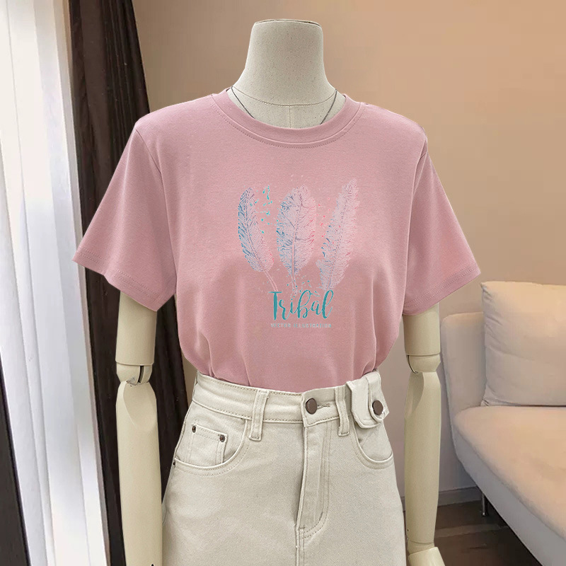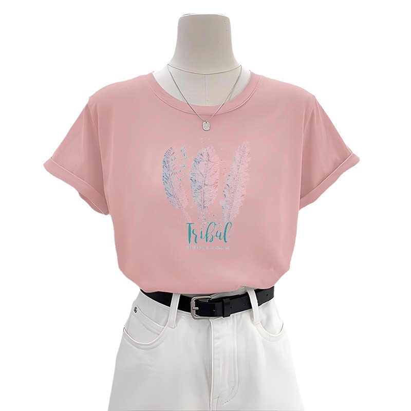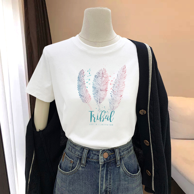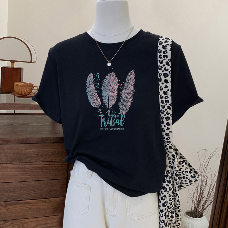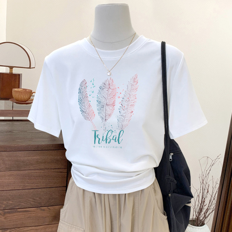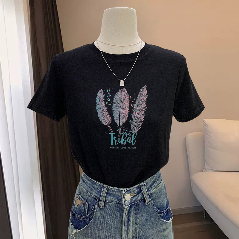 印花全棉短袖t恤女夏新款韩版大码宽松圆领纯色精梳棉质上衣isn潮