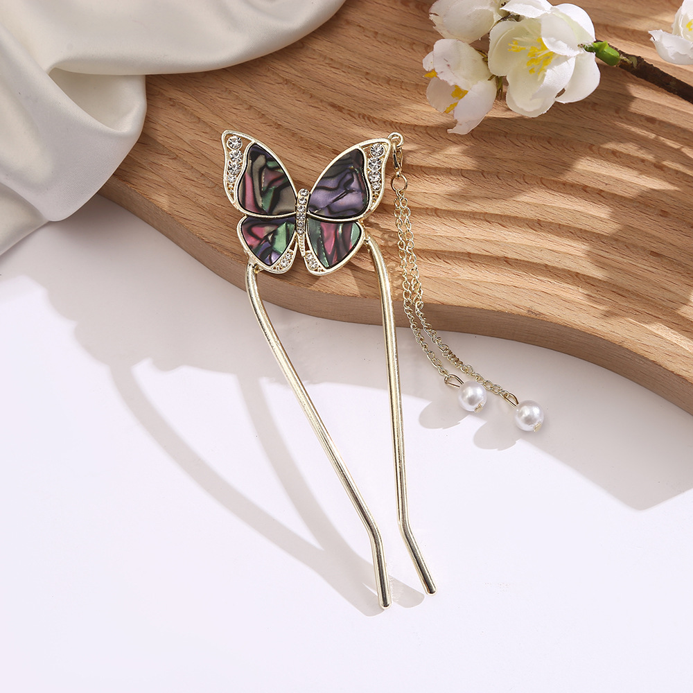 新款蝴蝶珍珠时尚简约苏发钗复古唯美百搭盘发簪古风旗袍配饰