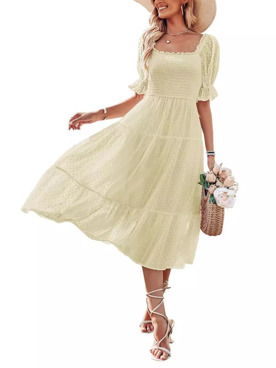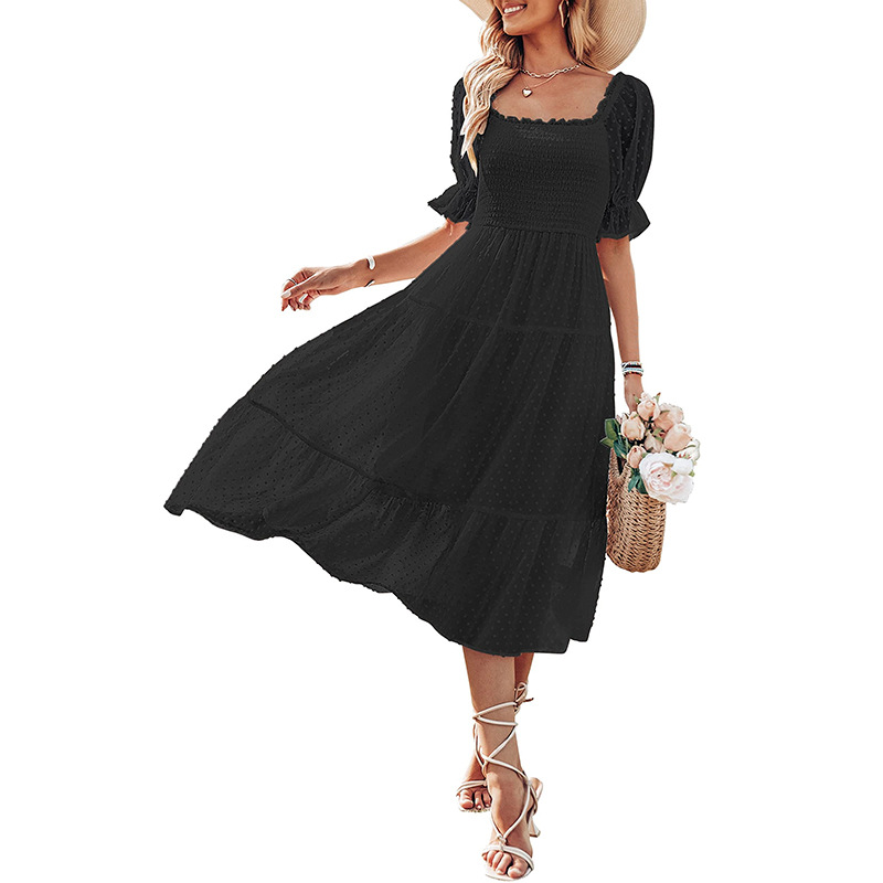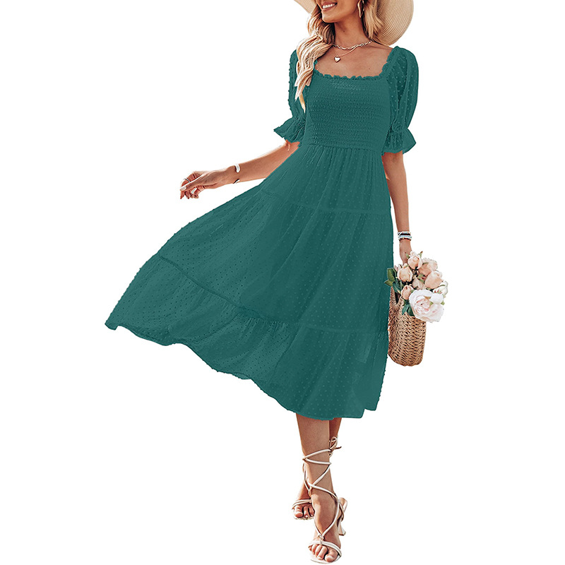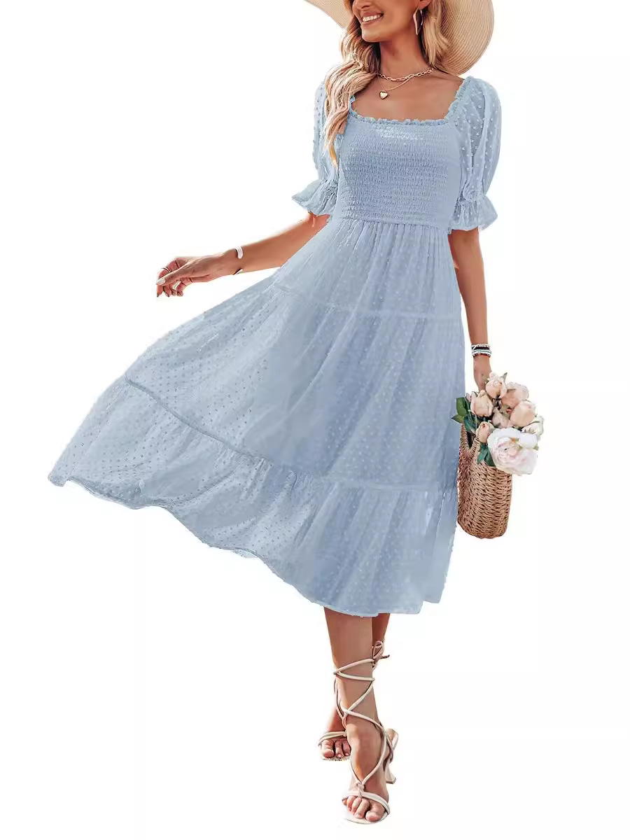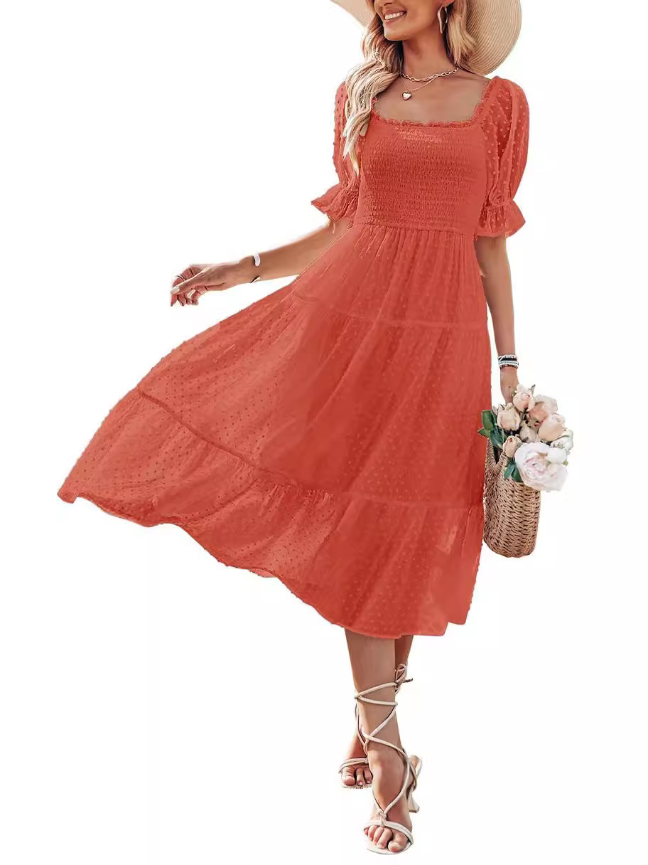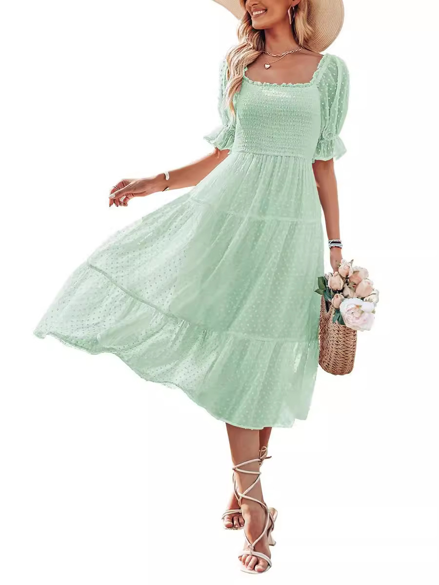 夏季雪纺百褶裙甜美通勤中长款连衣裙