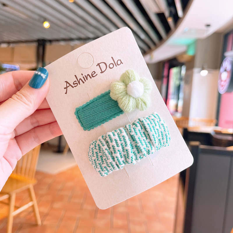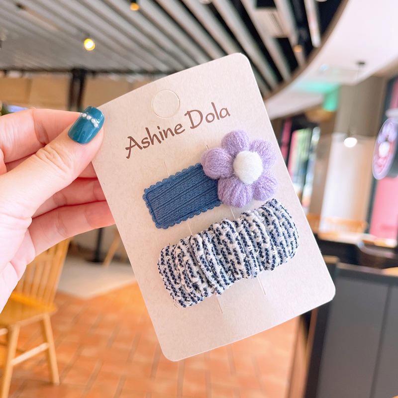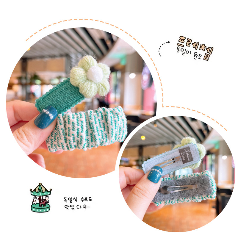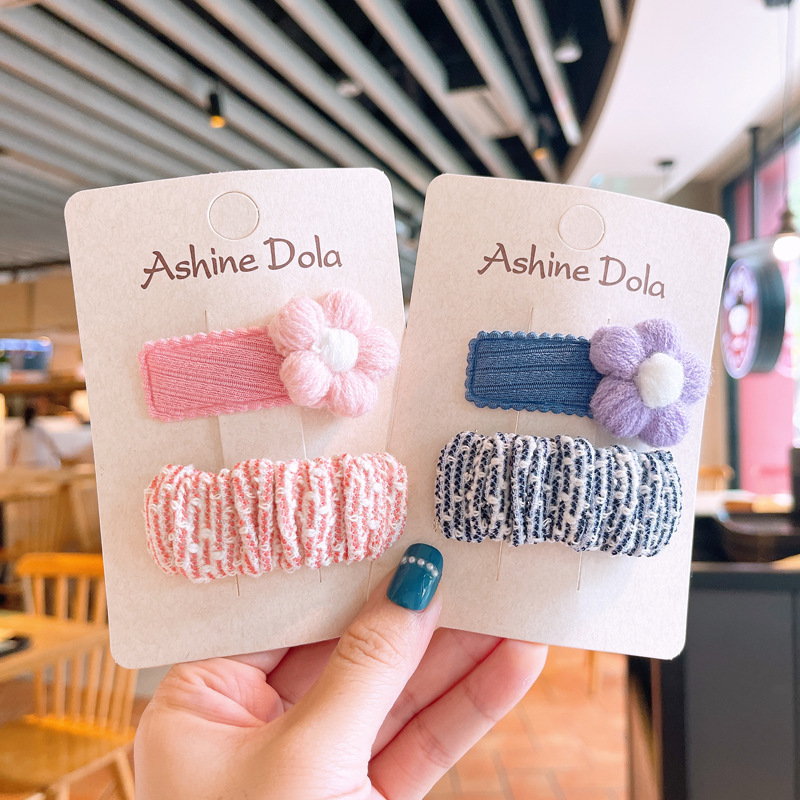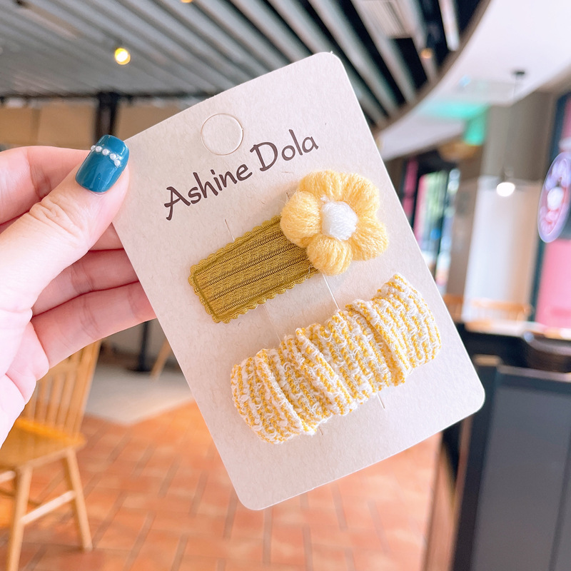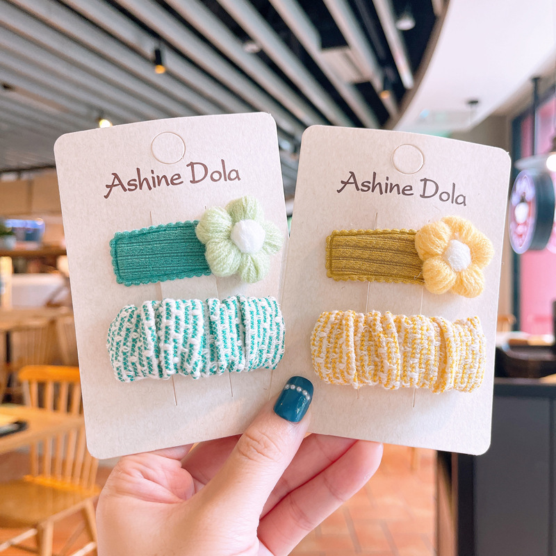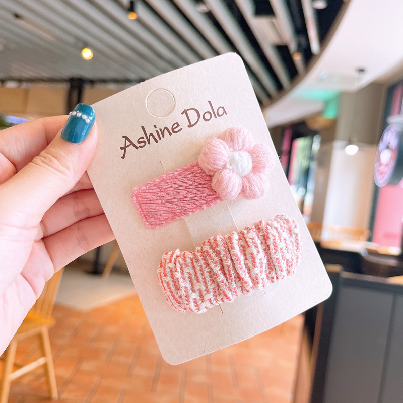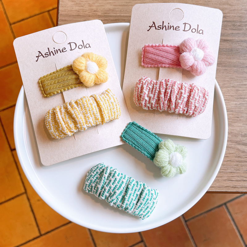 秋季新款儿童毛线花朵发夹可爱小女孩褶皱BB夹宝宝刘海碎发侧边夹