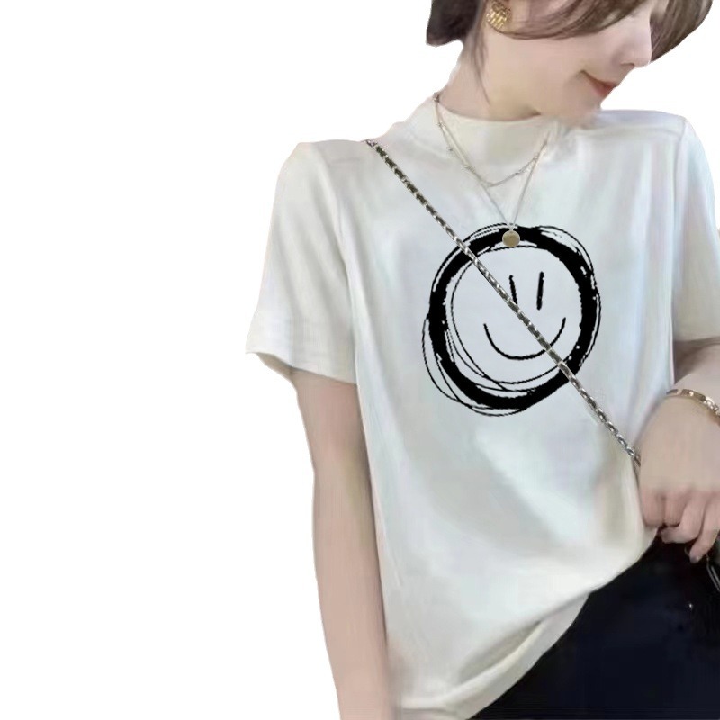 纯棉显瘦宽松半高领短袖t恤女夏季新款短款休闲半袖打底上衣