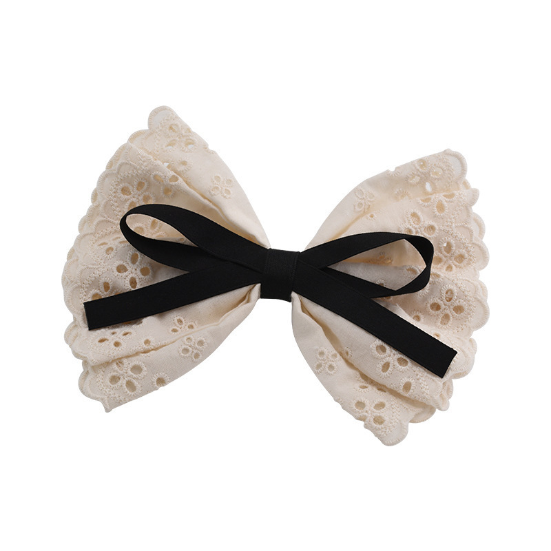 蕾丝双层蝴蝶结发夹甜美少女法式后脑勺发卡韩版风鸭嘴夹发饰