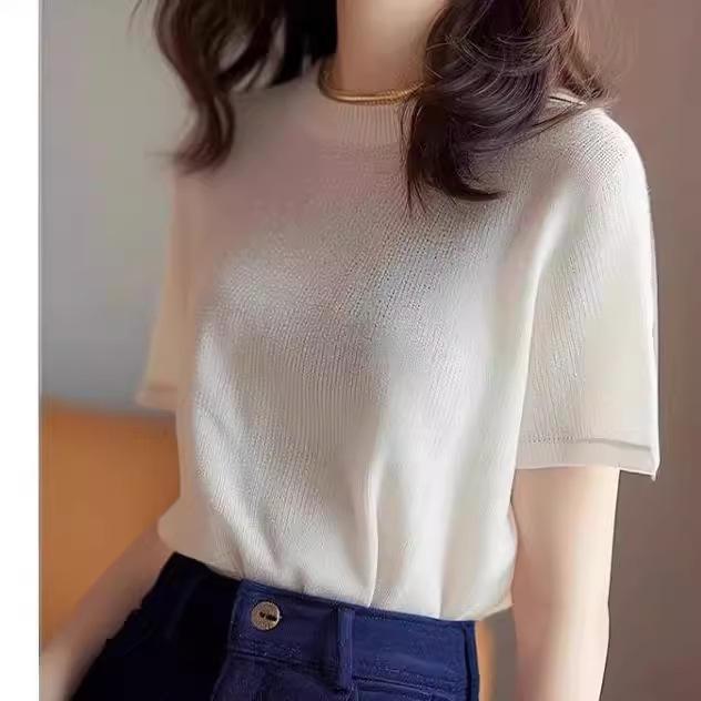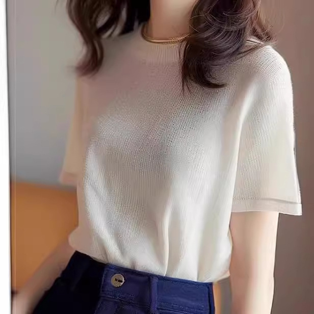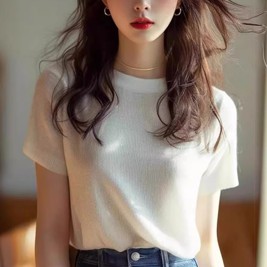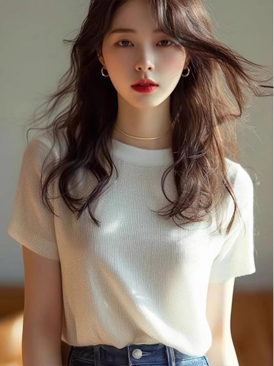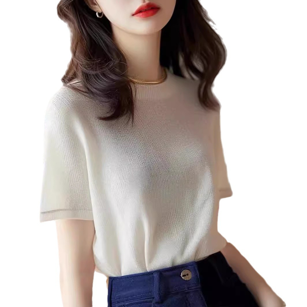 白色针织短袖t恤女夏季亮闪闪设计感小众上衣洋气独特别致超好看