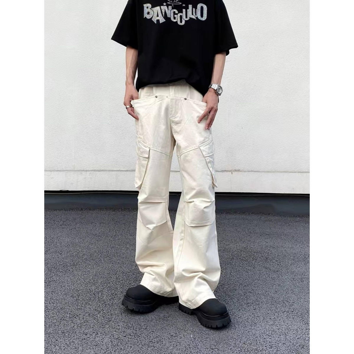 美式cleanfit多口袋伞兵工装裤男高街宽松褶皱设计感直筒休闲裤子