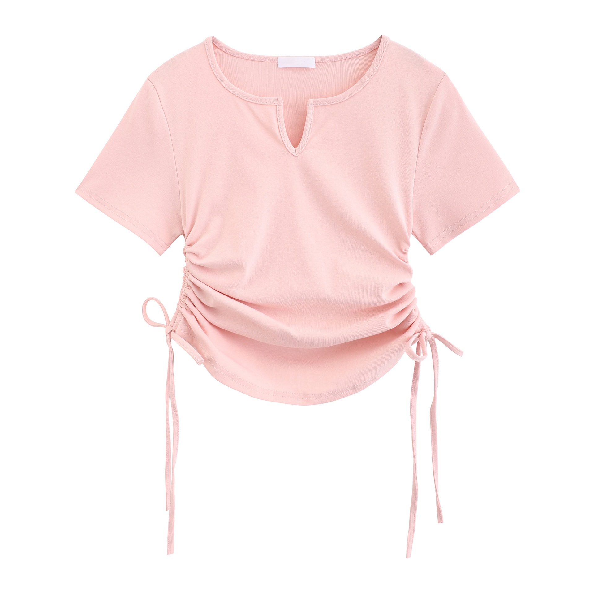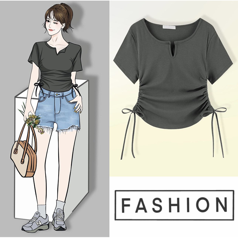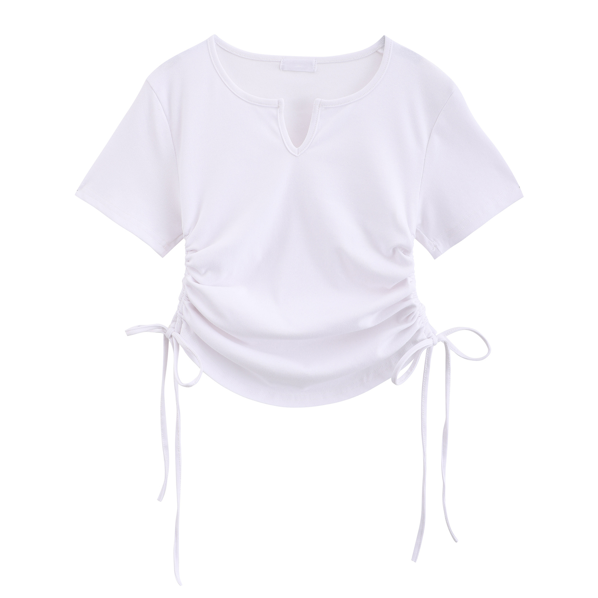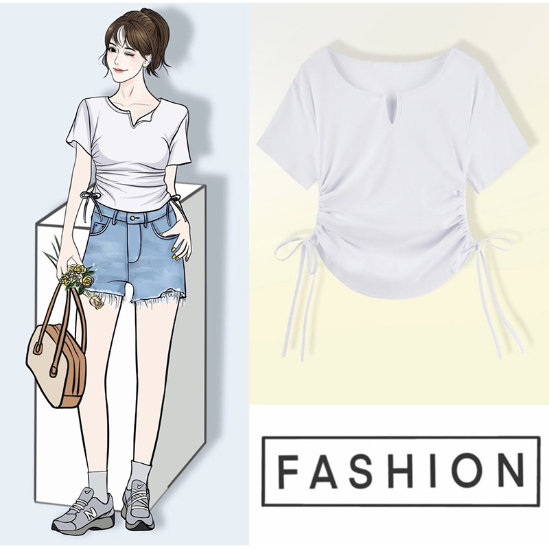 v领短袖t恤女显瘦夏季年新款韩版设计感小众纯欲辣妹白色上衣