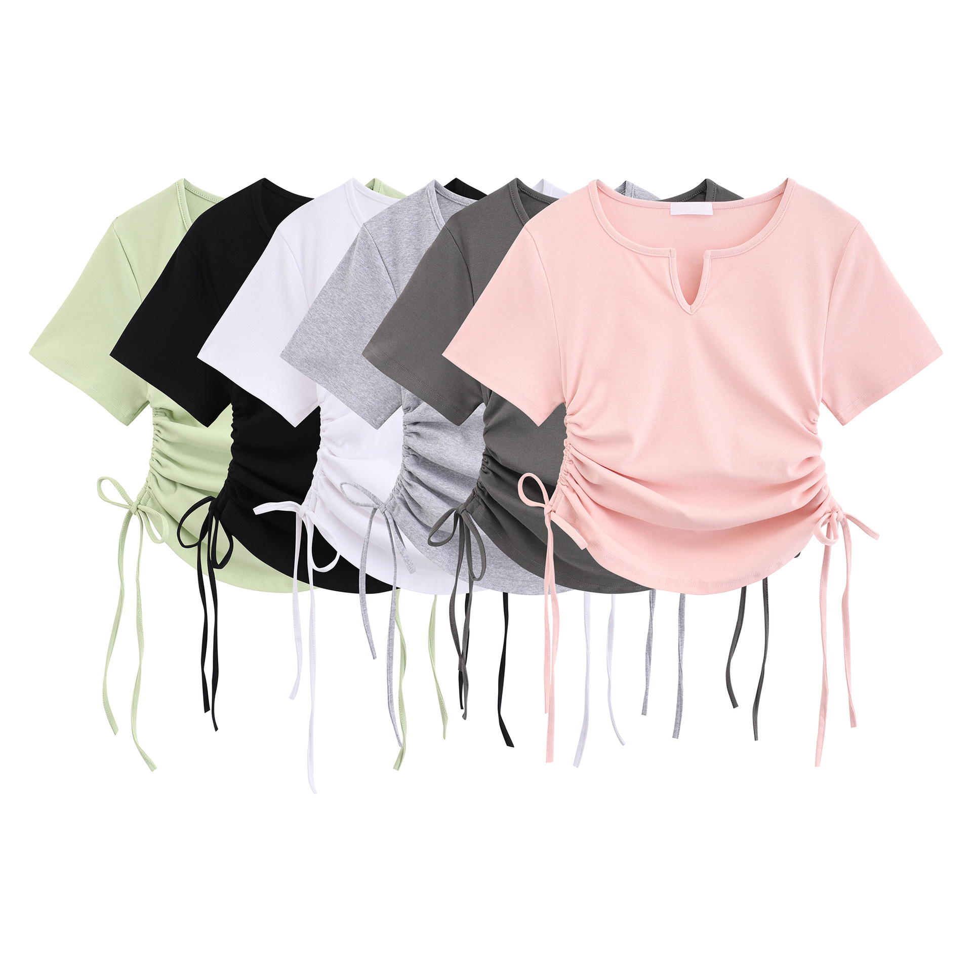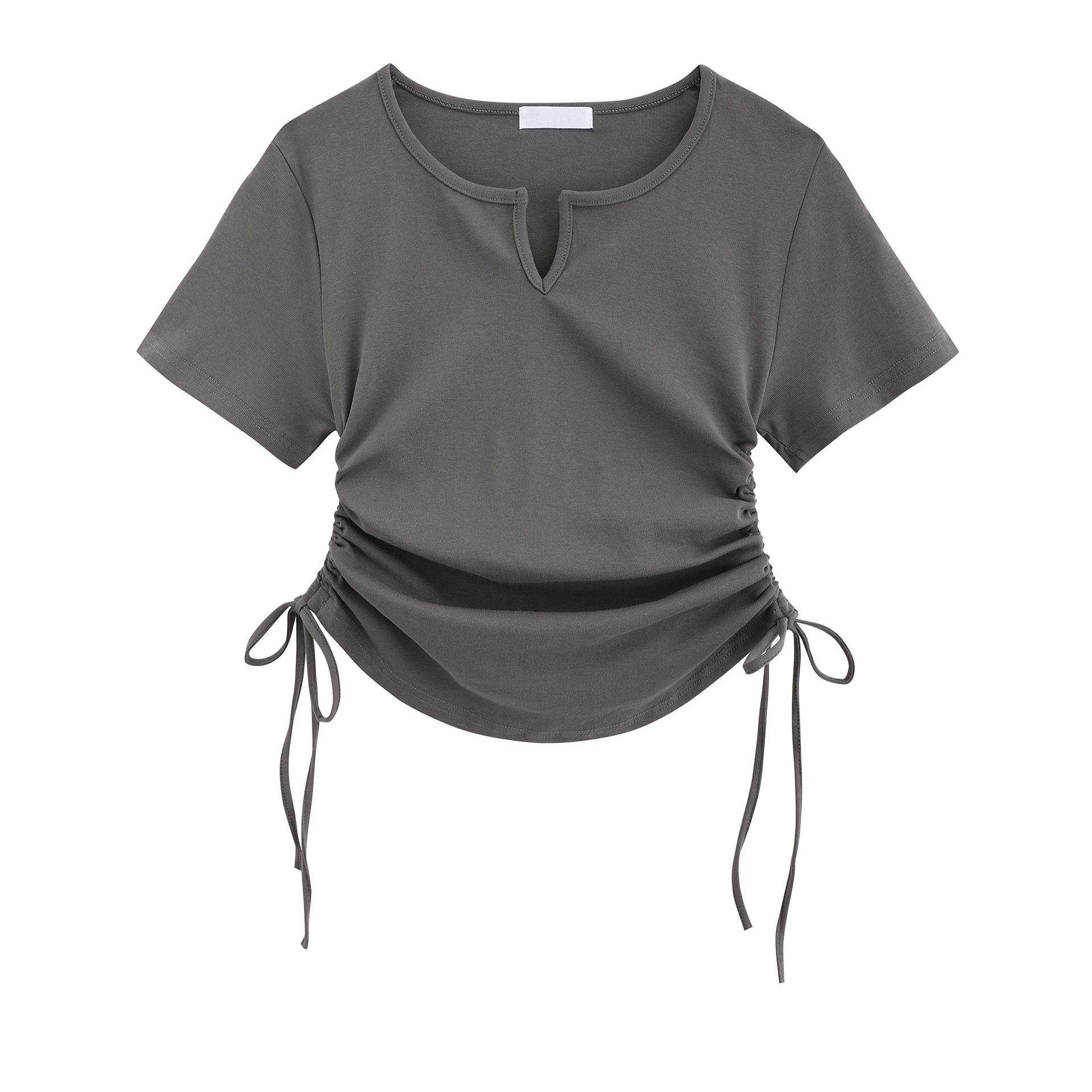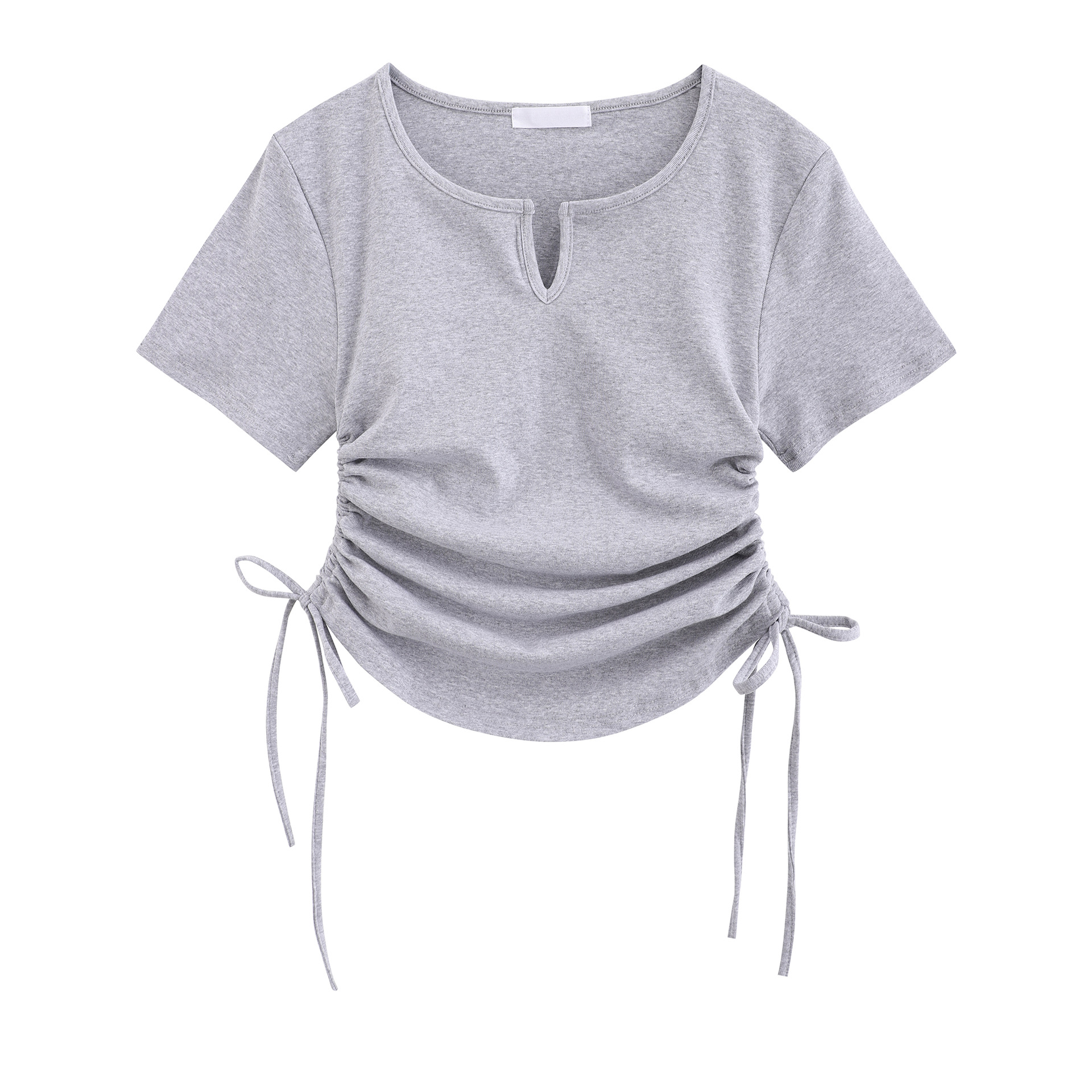 v领短袖t恤女显瘦夏季年新款韩版设计感小众纯欲辣妹白色上衣