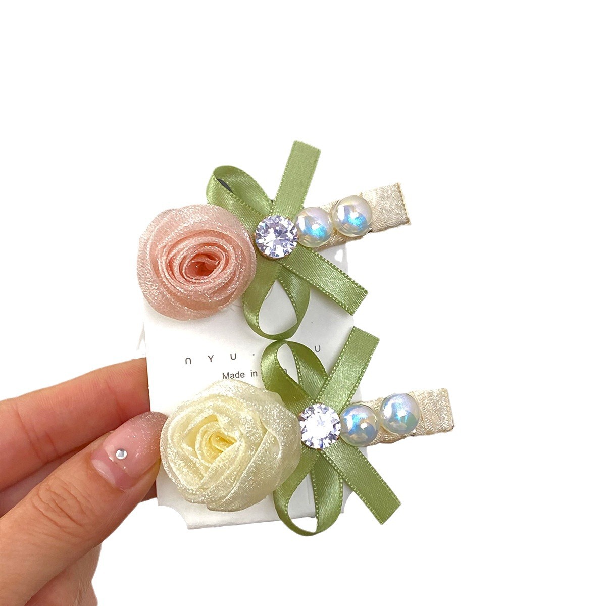 韩版发饰ins高级感森系玫瑰花朵蝴蝶结鸭嘴夹发夹发夹 发饰侧边夹