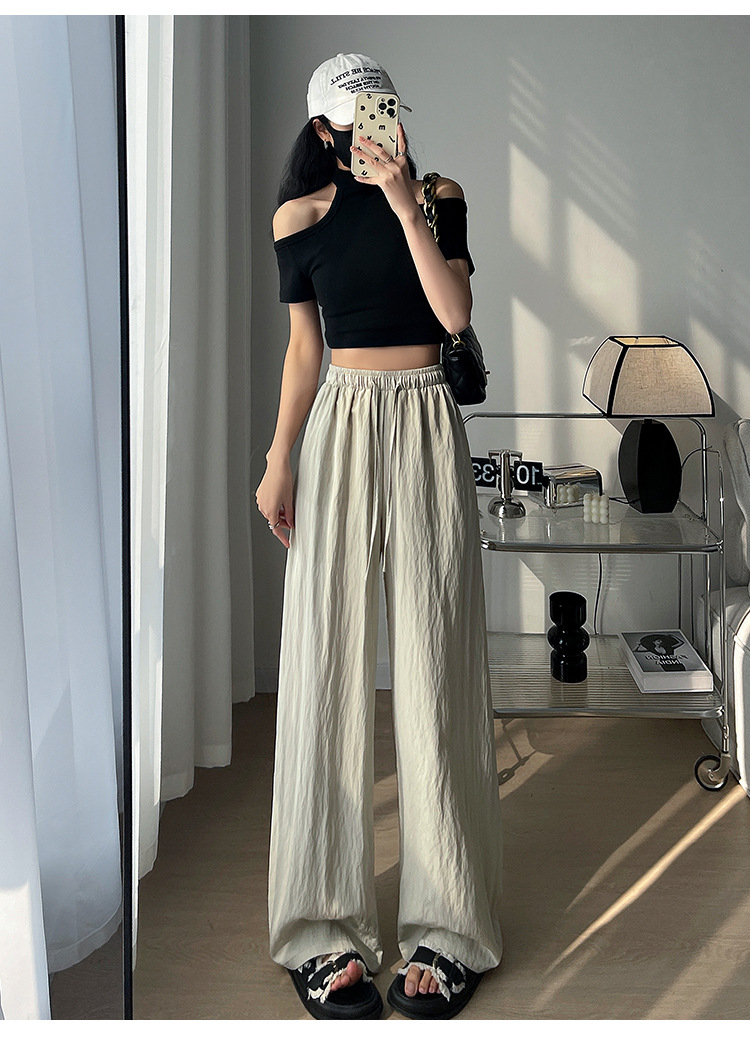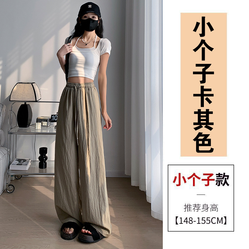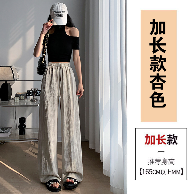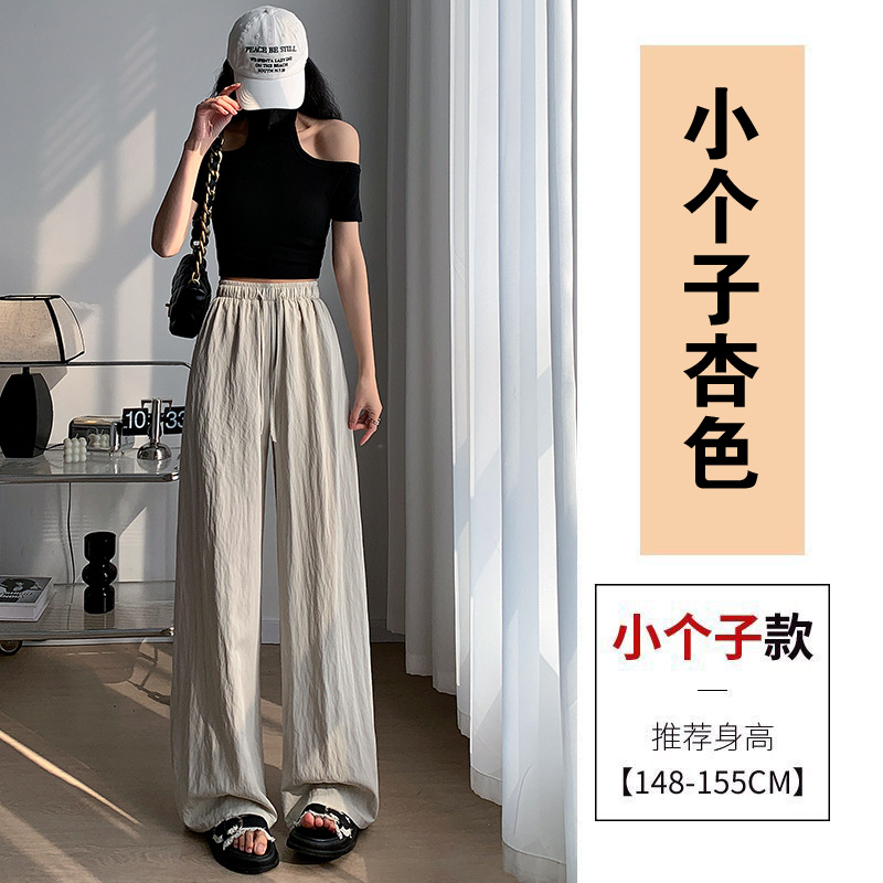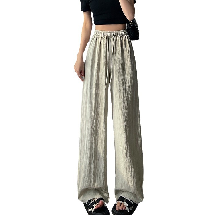 高腰垂感冰丝皱阔腿裤女夏季薄款日系慵懒直筒裤肌理感褶皱休闲裤