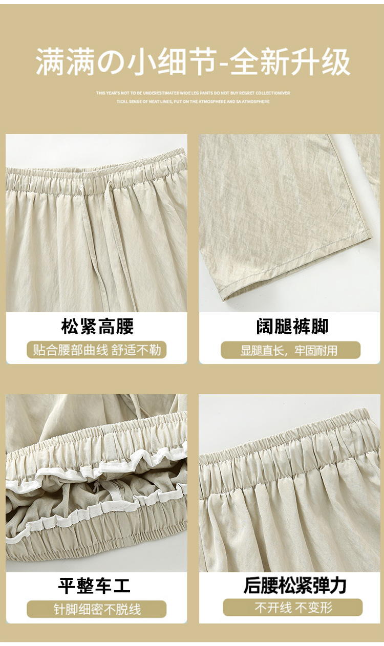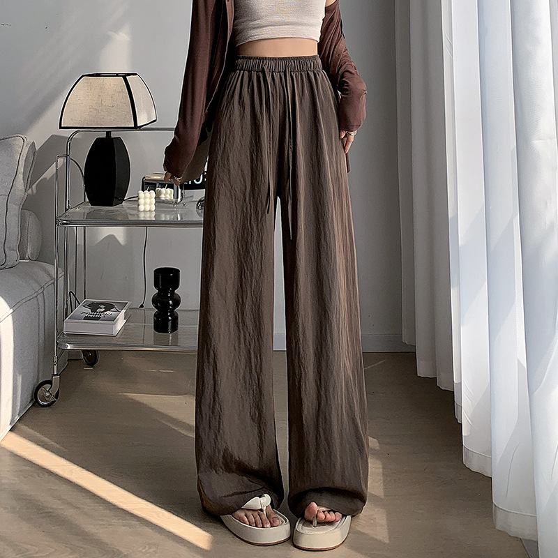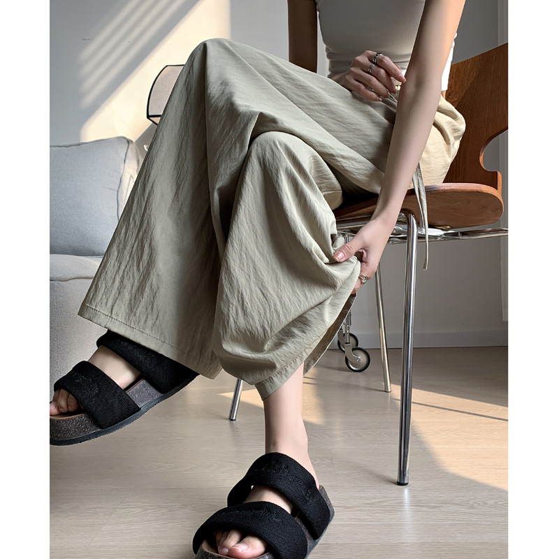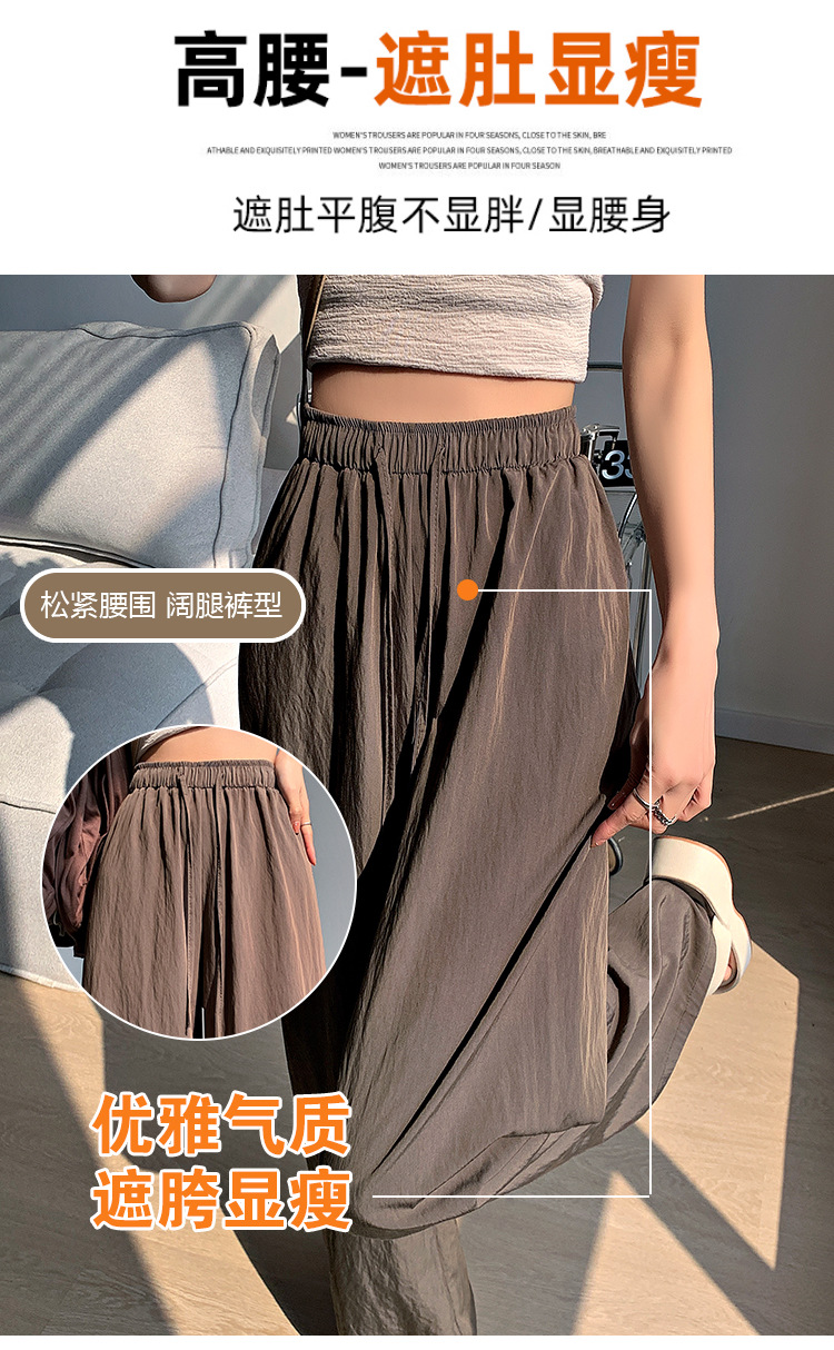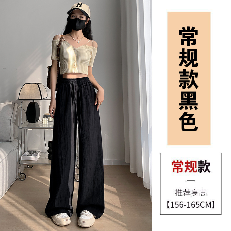 高腰垂感冰丝皱阔腿裤女夏季薄款日系慵懒直筒裤肌理感褶皱休闲裤