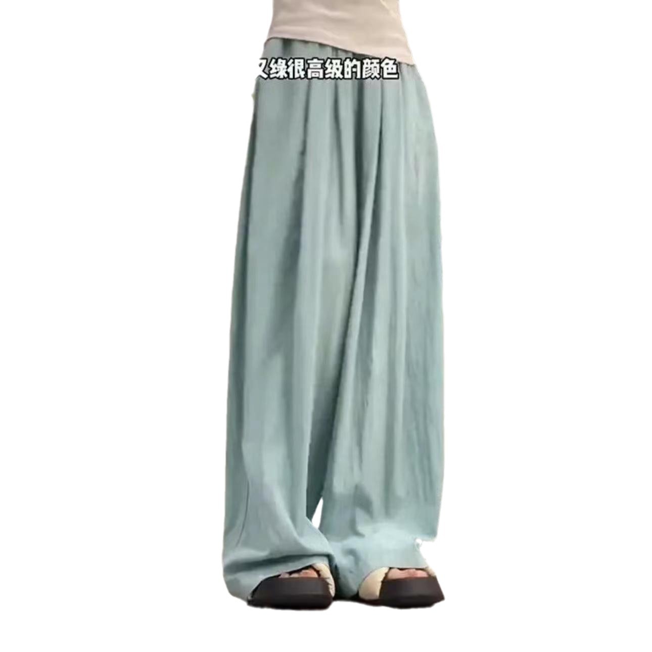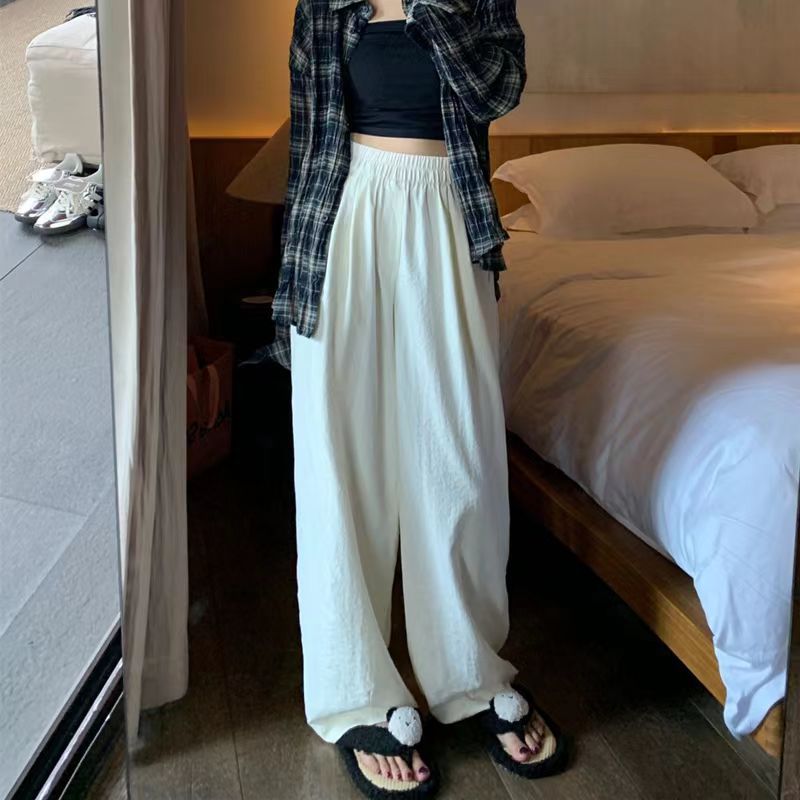 慵懒风肌理感阔腿裤春夏韩版高腰显瘦宽松休闲裤直筒拖地裤女