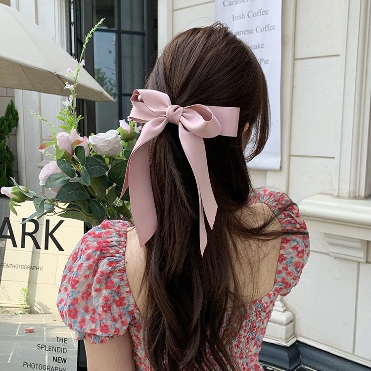 少女私藏百搭蝴蝶结飘带发夹奶油白色气质高级感弹簧夹半扎发发饰