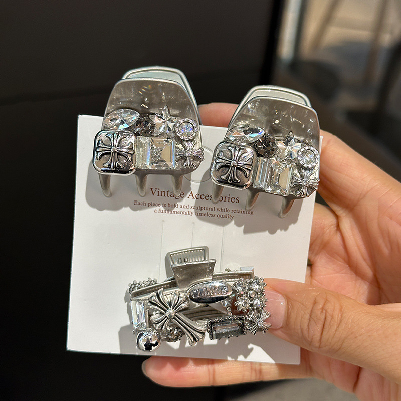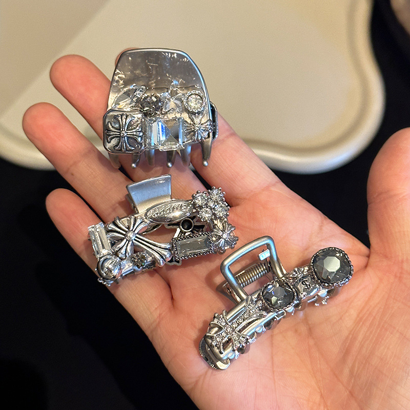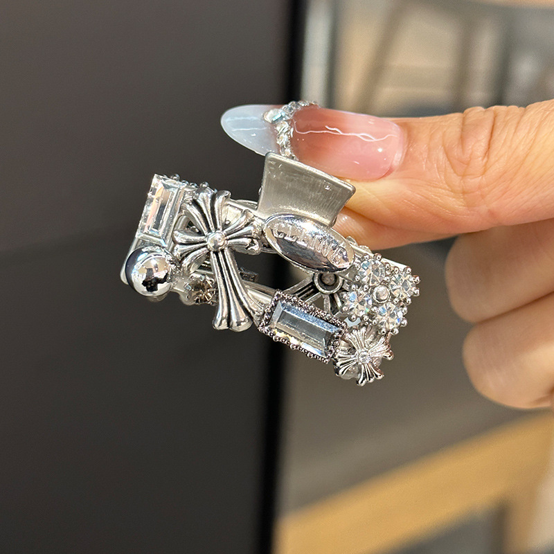 暗黑做旧复古十字架发夹甜酷金属刘海抓夹侧边夹马尾夹鲨鱼夹发饰