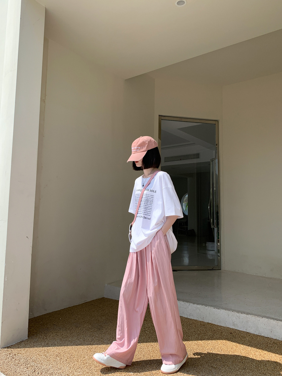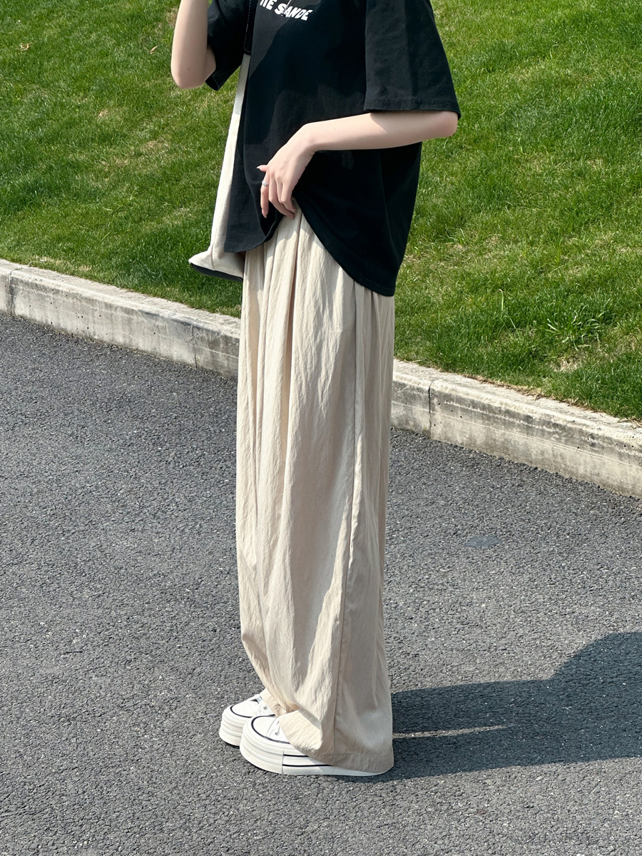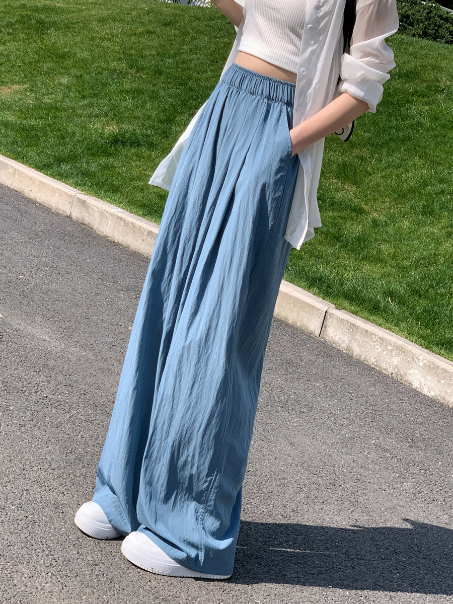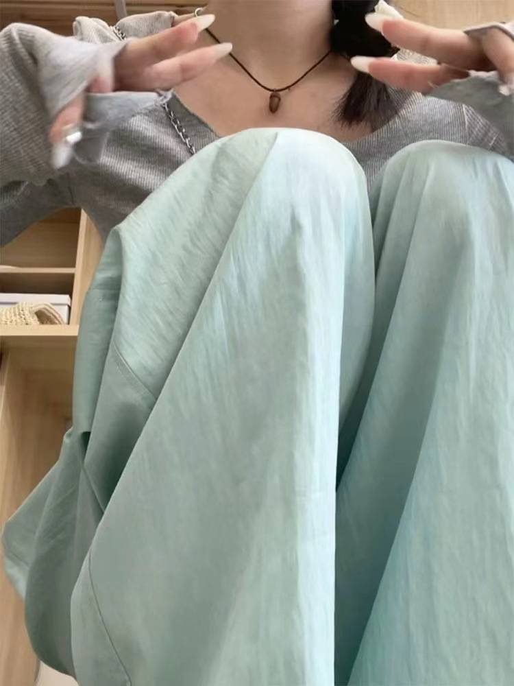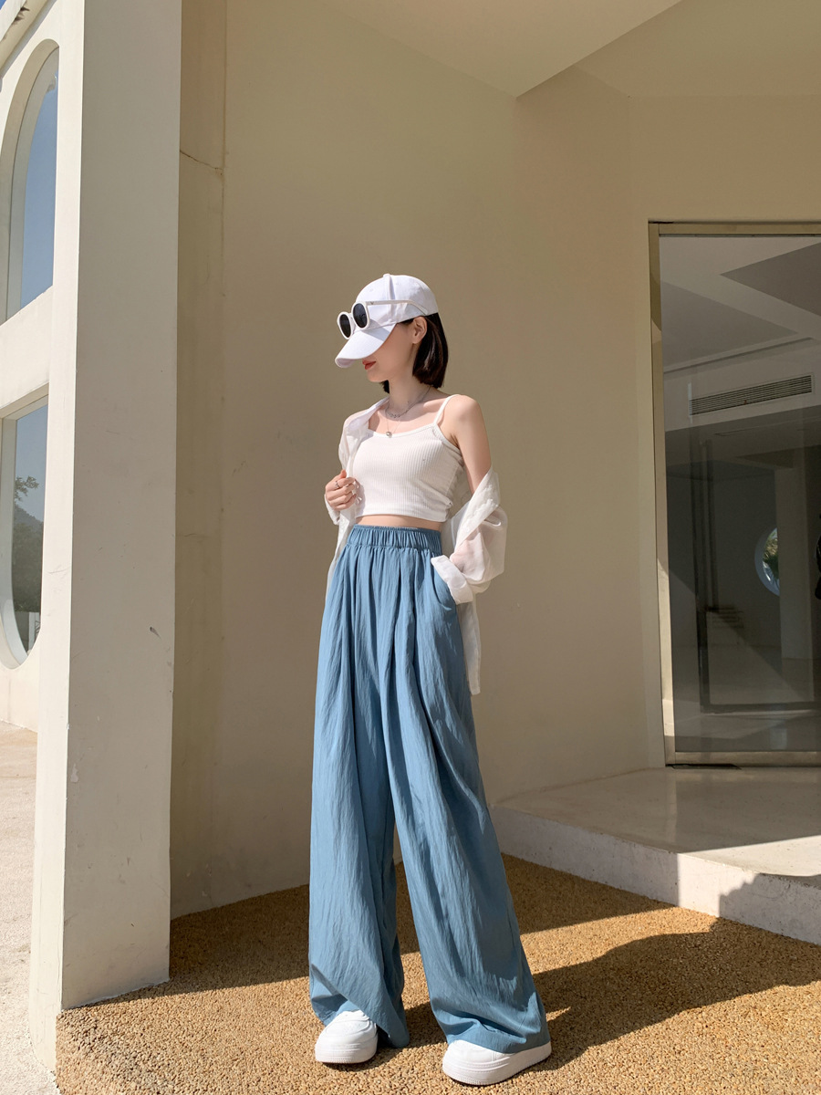 湖蓝色冰丝山本裤女宽松夏季新款春秋休闲高腰垂感棉麻阔腿裤