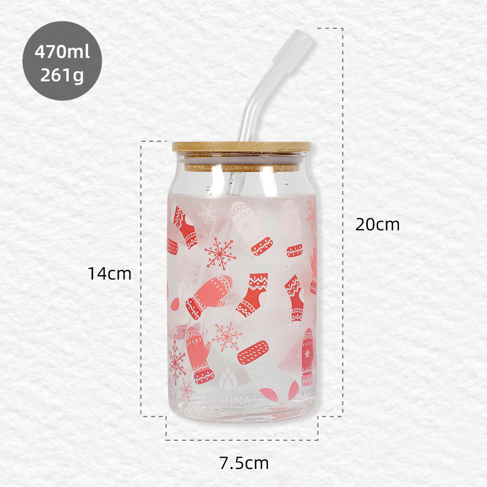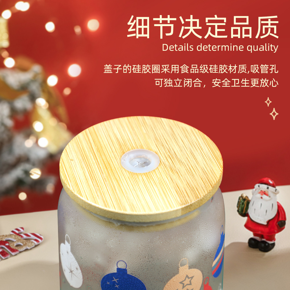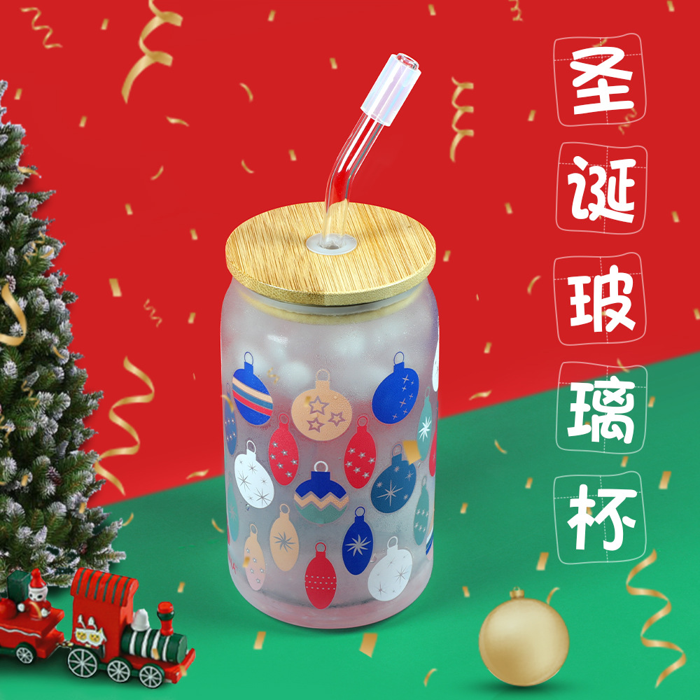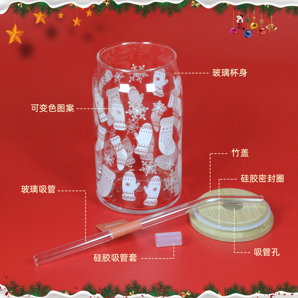百货新款创意圣诞节礼物吸管杯 竹节盖带吸管遇冷变色玻璃杯