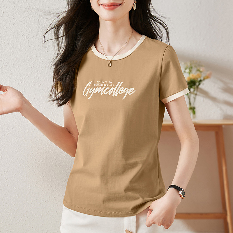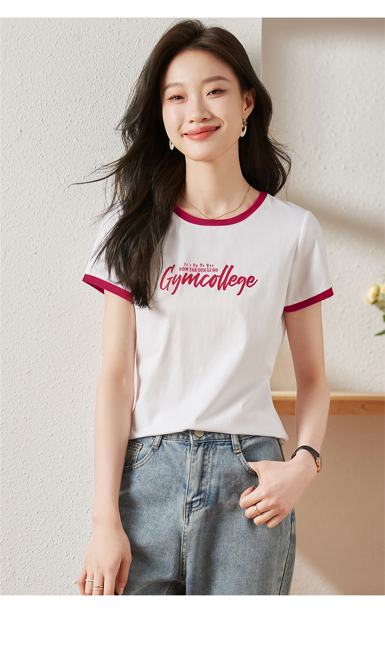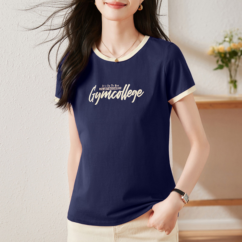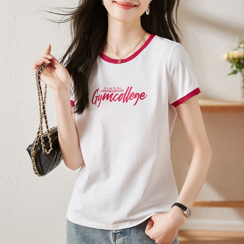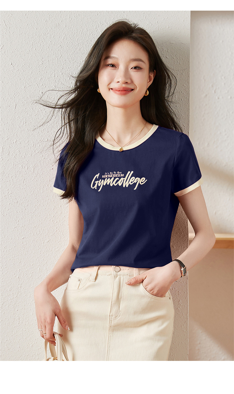 夏季薄款短袖t恤女装拼色美式休闲上衣年新款宽松大码体恤衫