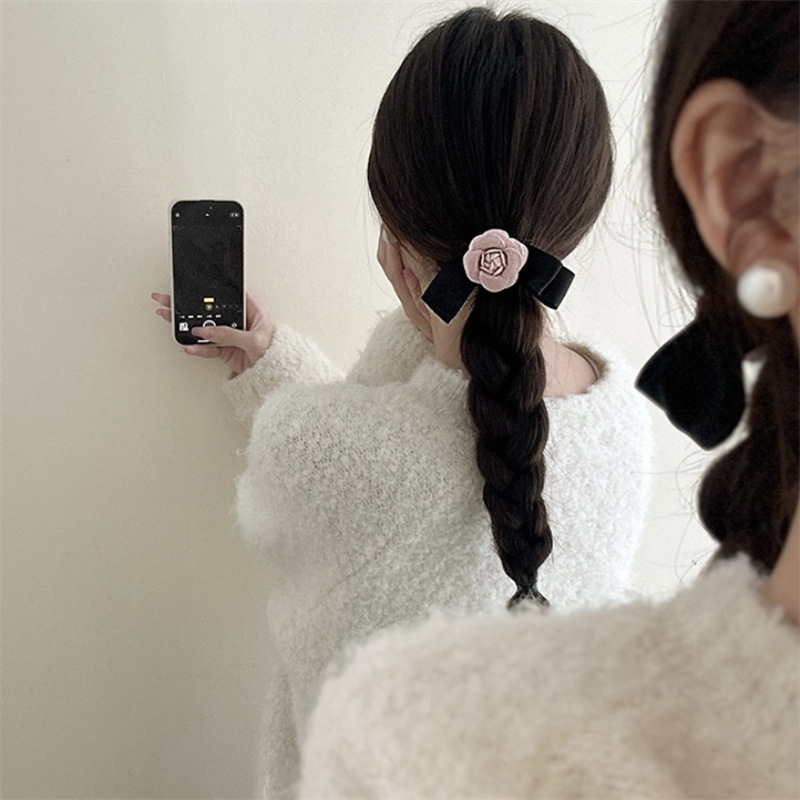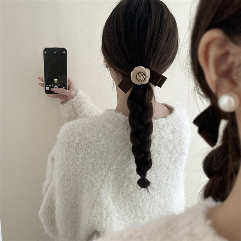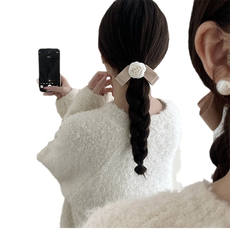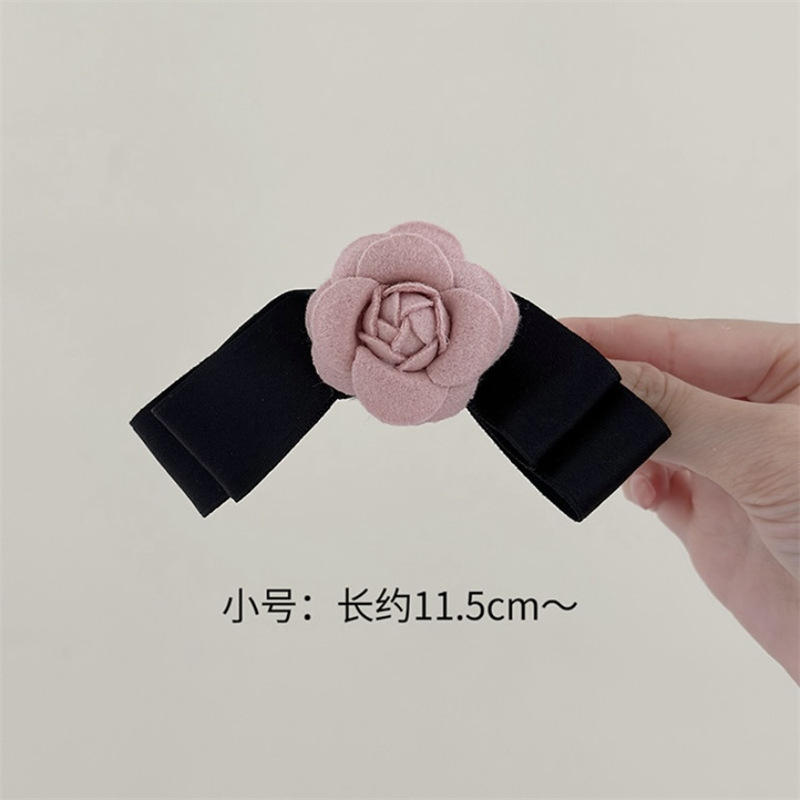 法式经典复古优雅山茶花蝴蝶结发夹女设计感气质侧边发卡新款发饰