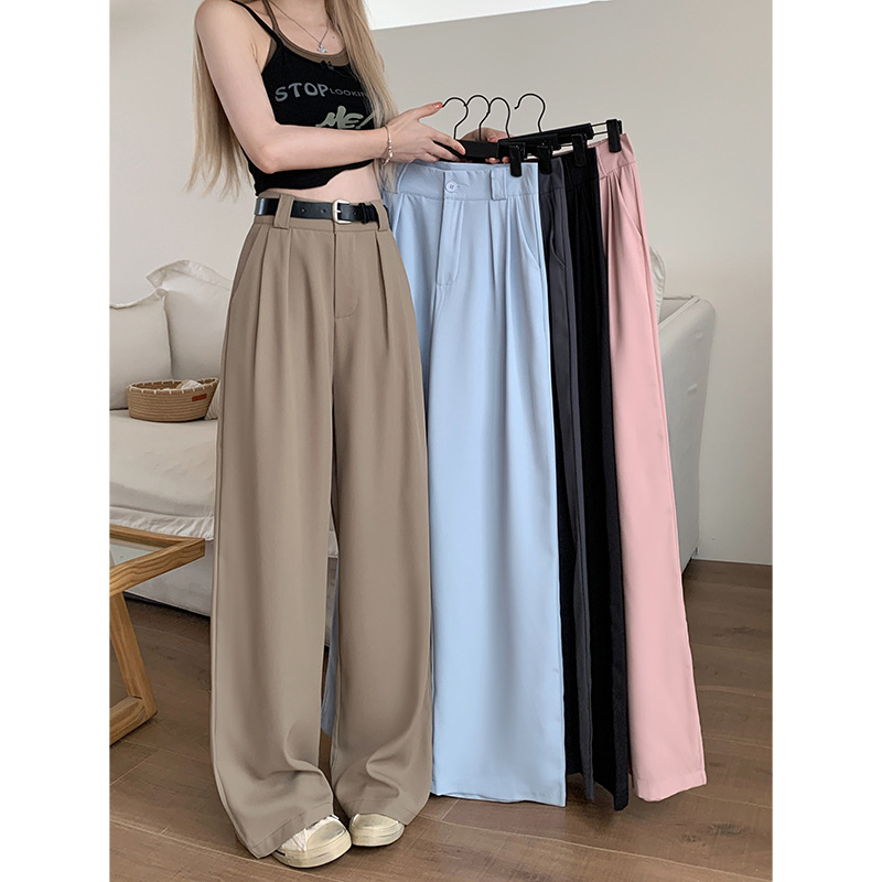夏季韩系纯欲风气质西装休闲裤宽松显瘦垂感拖地裤子