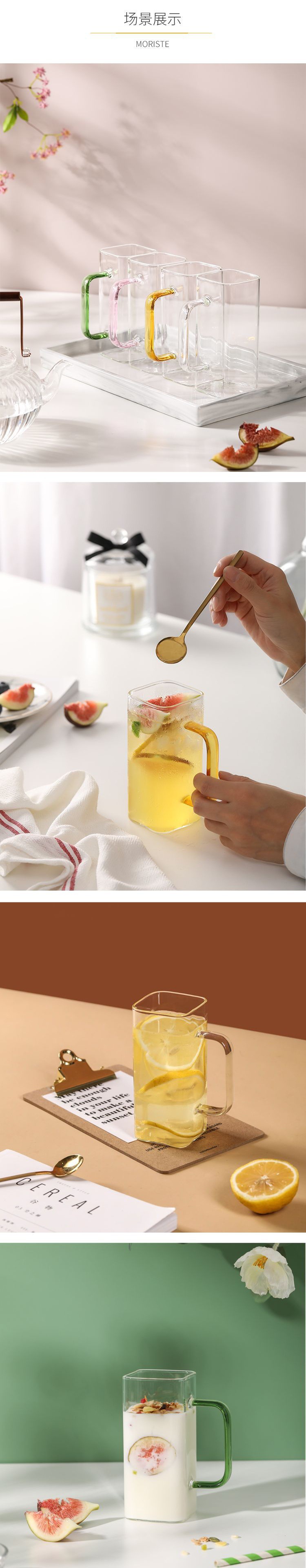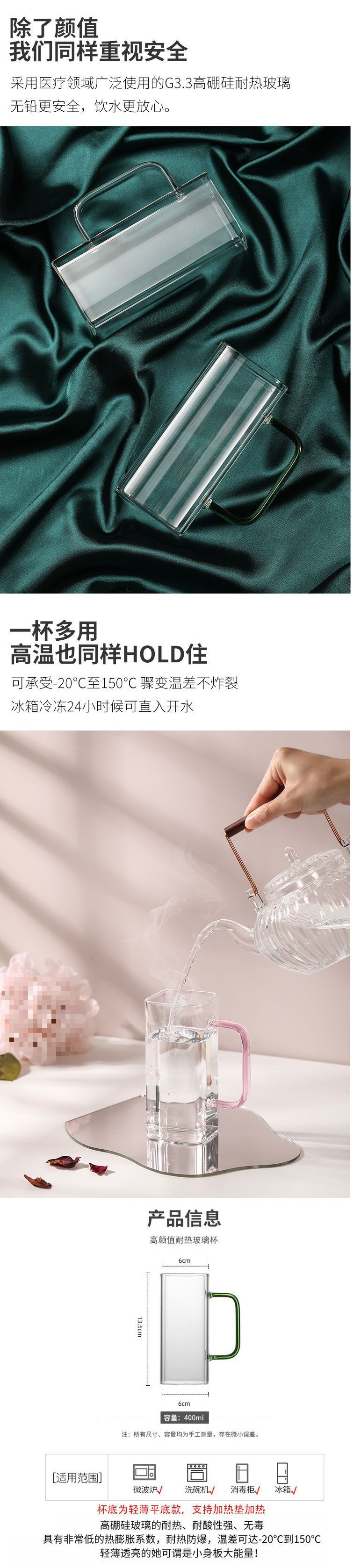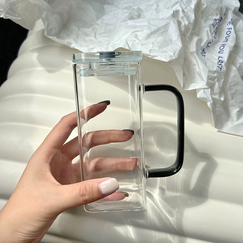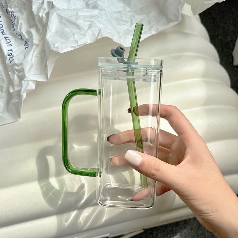 网红玻璃杯方形女士高颜值吸管水杯家用带把手透明简约平底可杯子