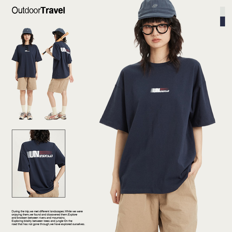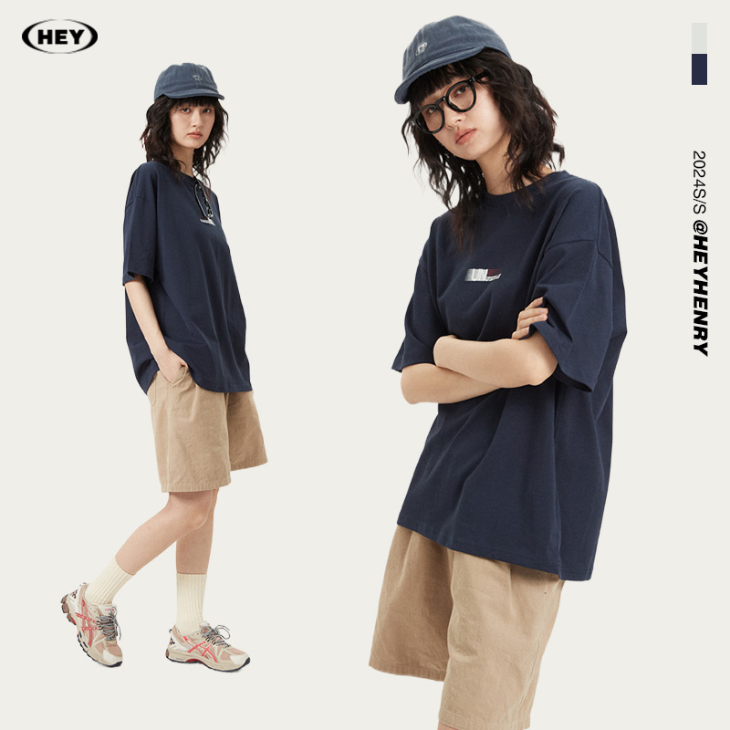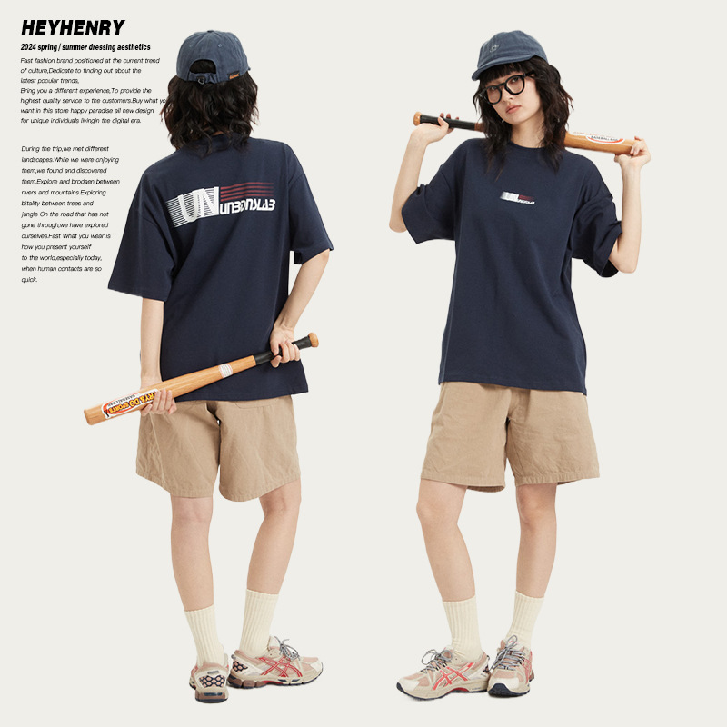 HeyHenry 男装国潮夏季复古字母印花短袖t恤男女高街情侣宽松体恤