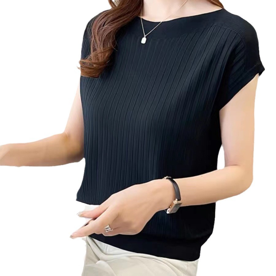 冰丝针织衫女宽松夏季新款灰色上衣一字领轻薄短袖t恤小衫