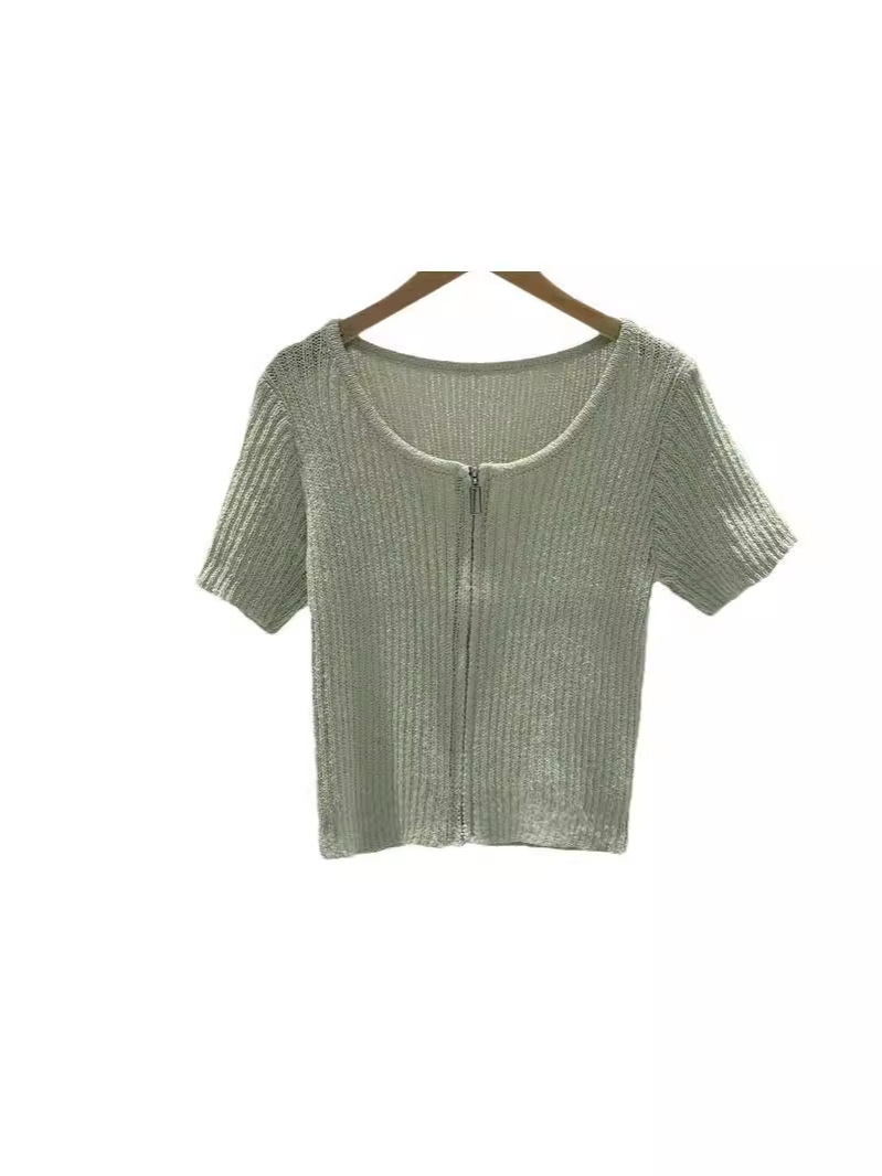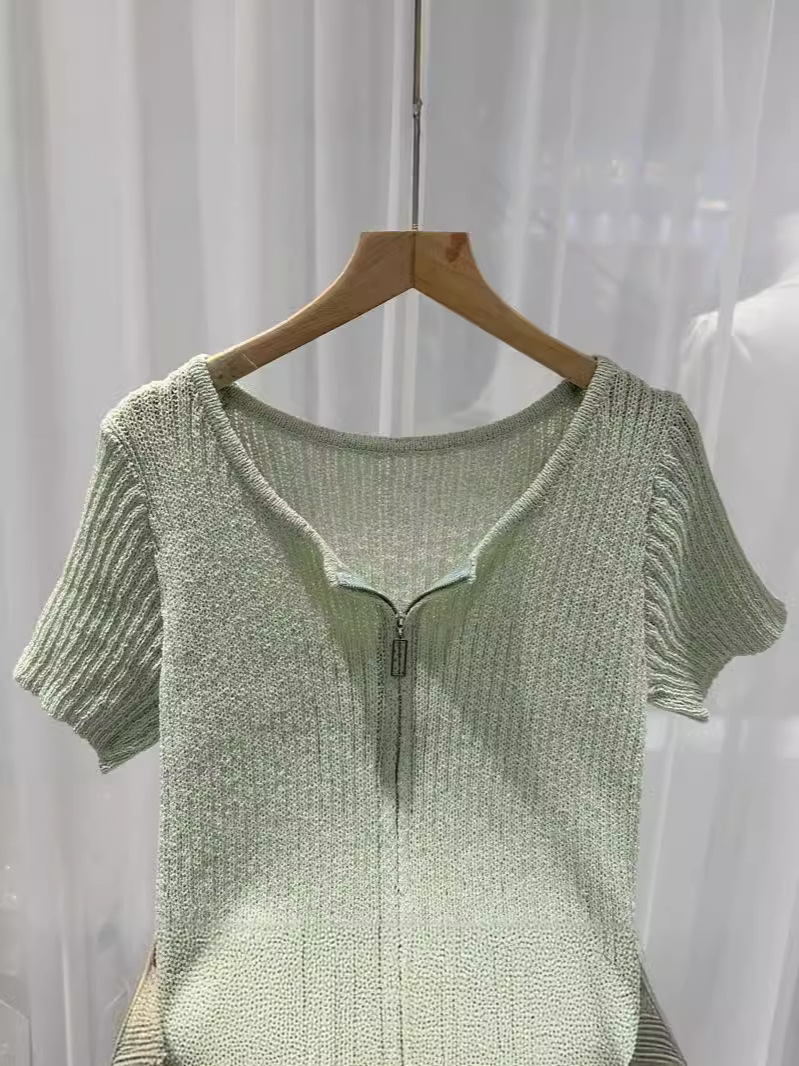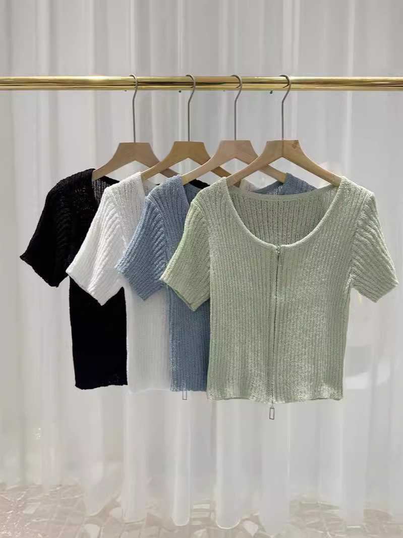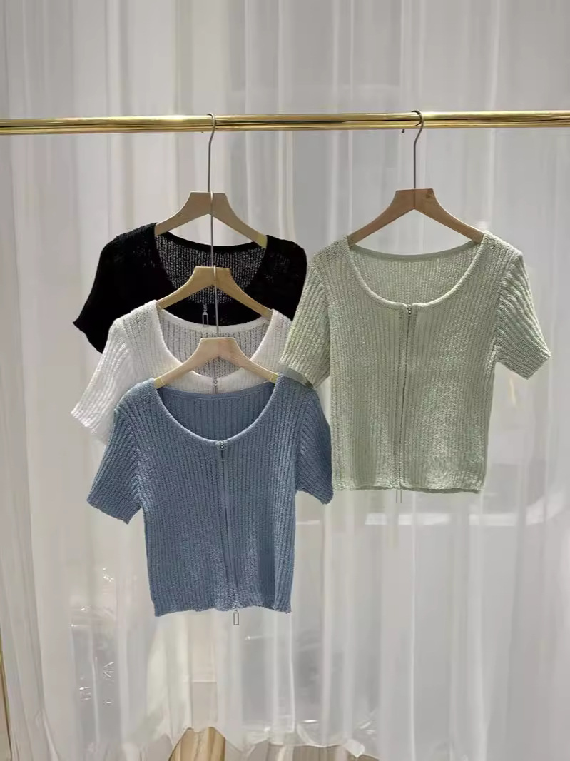 夏季针织衫圆领短袖女装T恤开衫宽松显瘦女式韩版高级感上衣