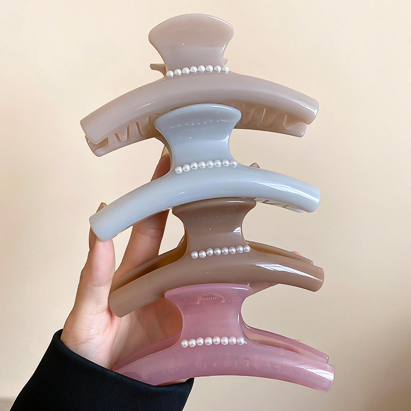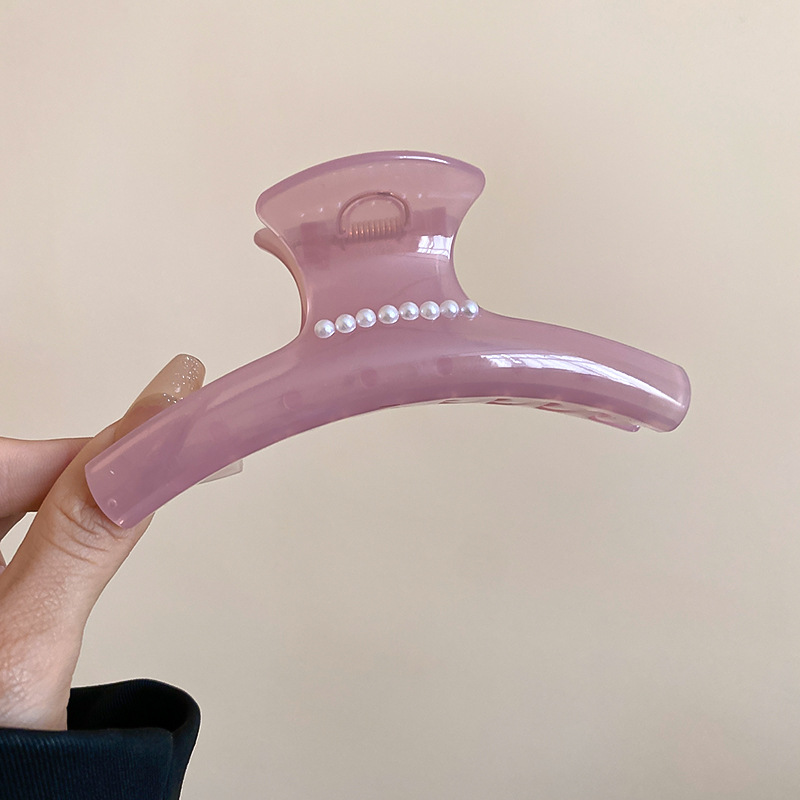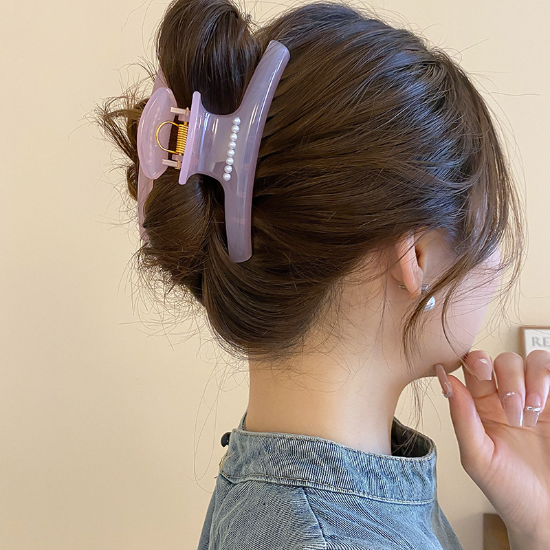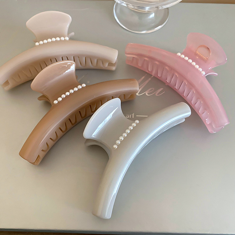 高级感亚克力珍珠发夹韩系ins简约气质盘发鲨鱼夹小众设计感发饰