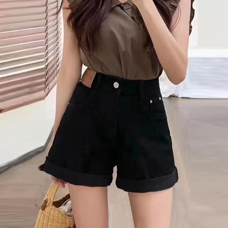 夏季新款黑色紧身牛仔短裤女高腰显瘦辣妹包臀热裤卷边裤子