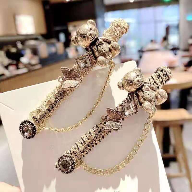 甜美链条发夹女韩国时尚鸭嘴夹金属磨砂刘海边夹兔子发卡无痕卡子