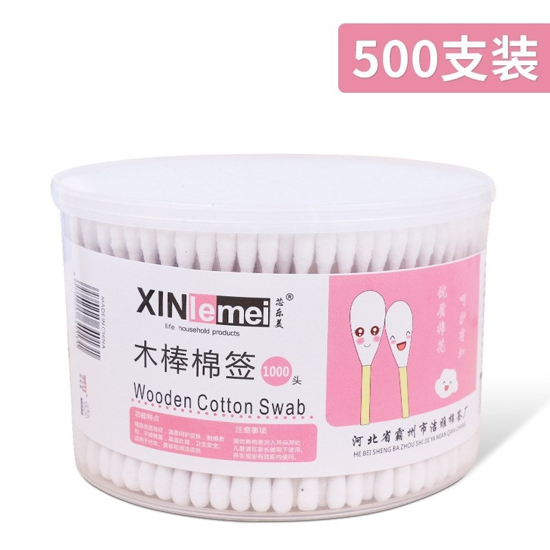 双头500只盒装棉签棉花棒家用化妆棉签掏耳朵无菌木棒