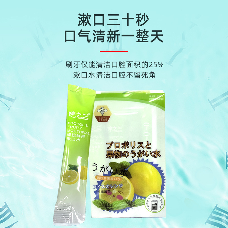 蜂胶鲜果益生菌果香漱口水清新口气便携式除口臭抑菌牙黄变白学生