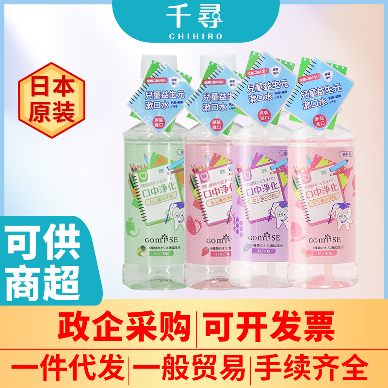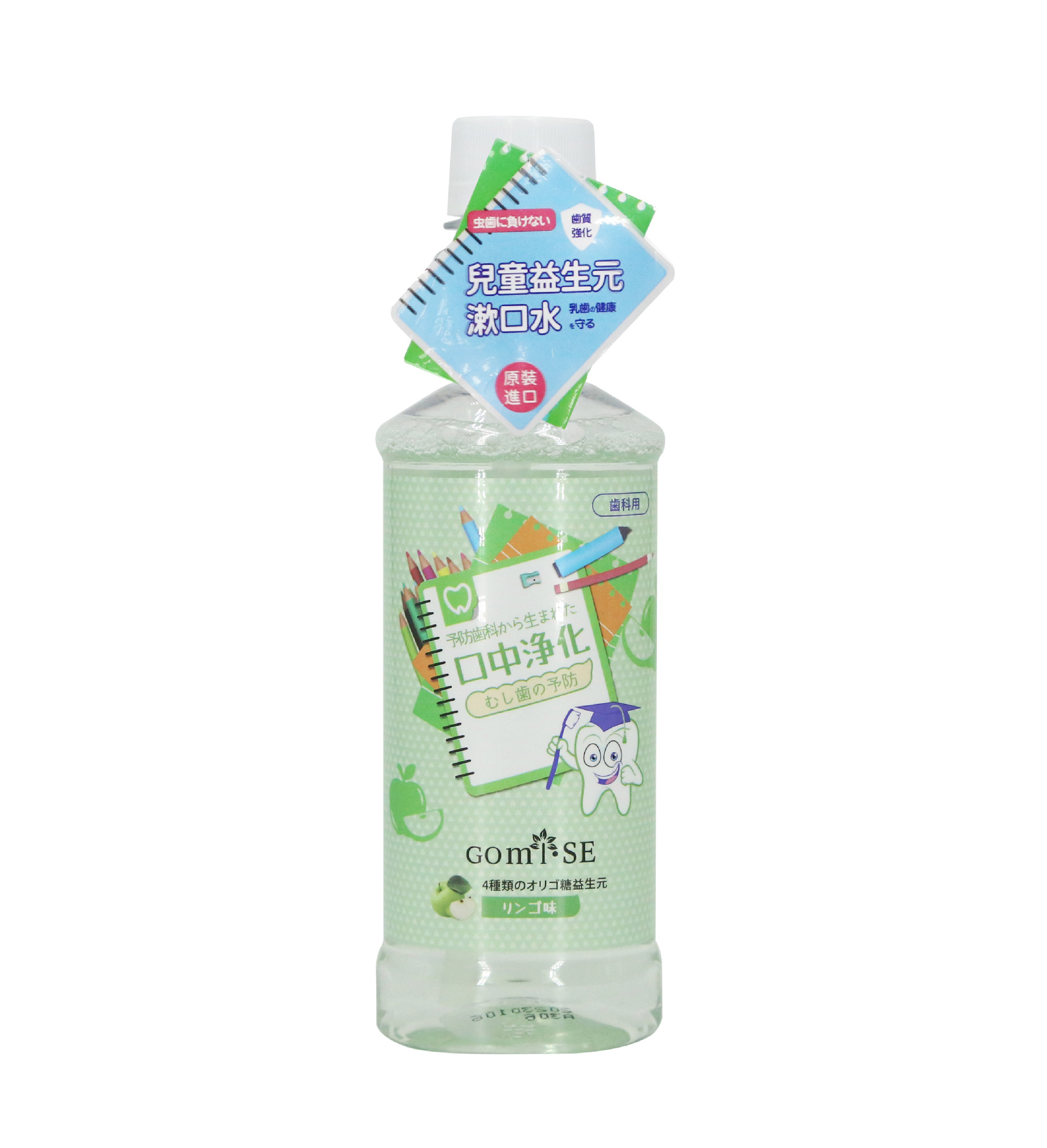 进口gomise3-12岁儿童益生元漱口水防蛀固齿抗菌无酒精无氟250ml