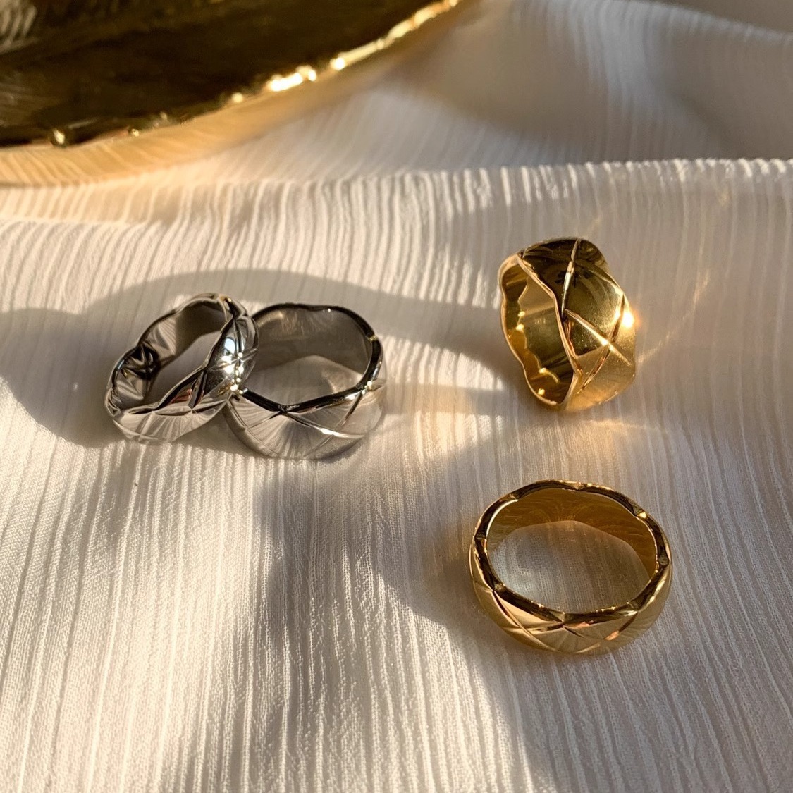 不要问 时髦小姐欧美百搭菱格戒指ins叠戴宽版窄指环经典
