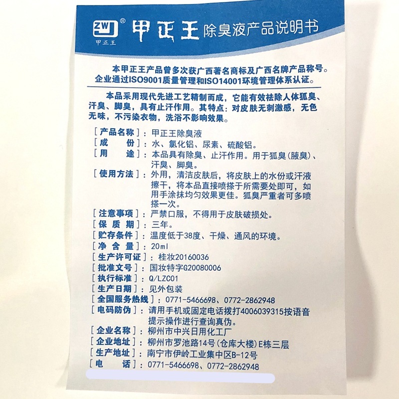 甲正王 除臭液 除臭剂 香体液 止汗香体液 12ml 20ml